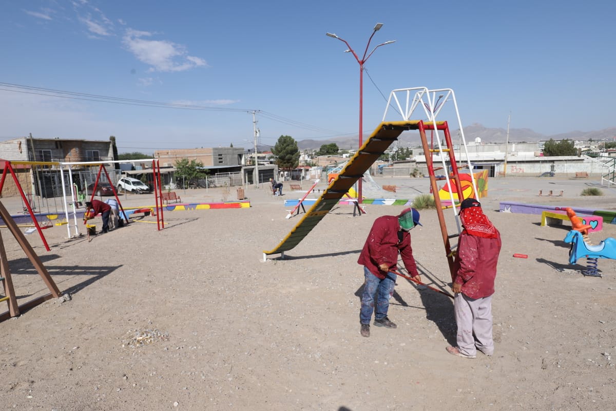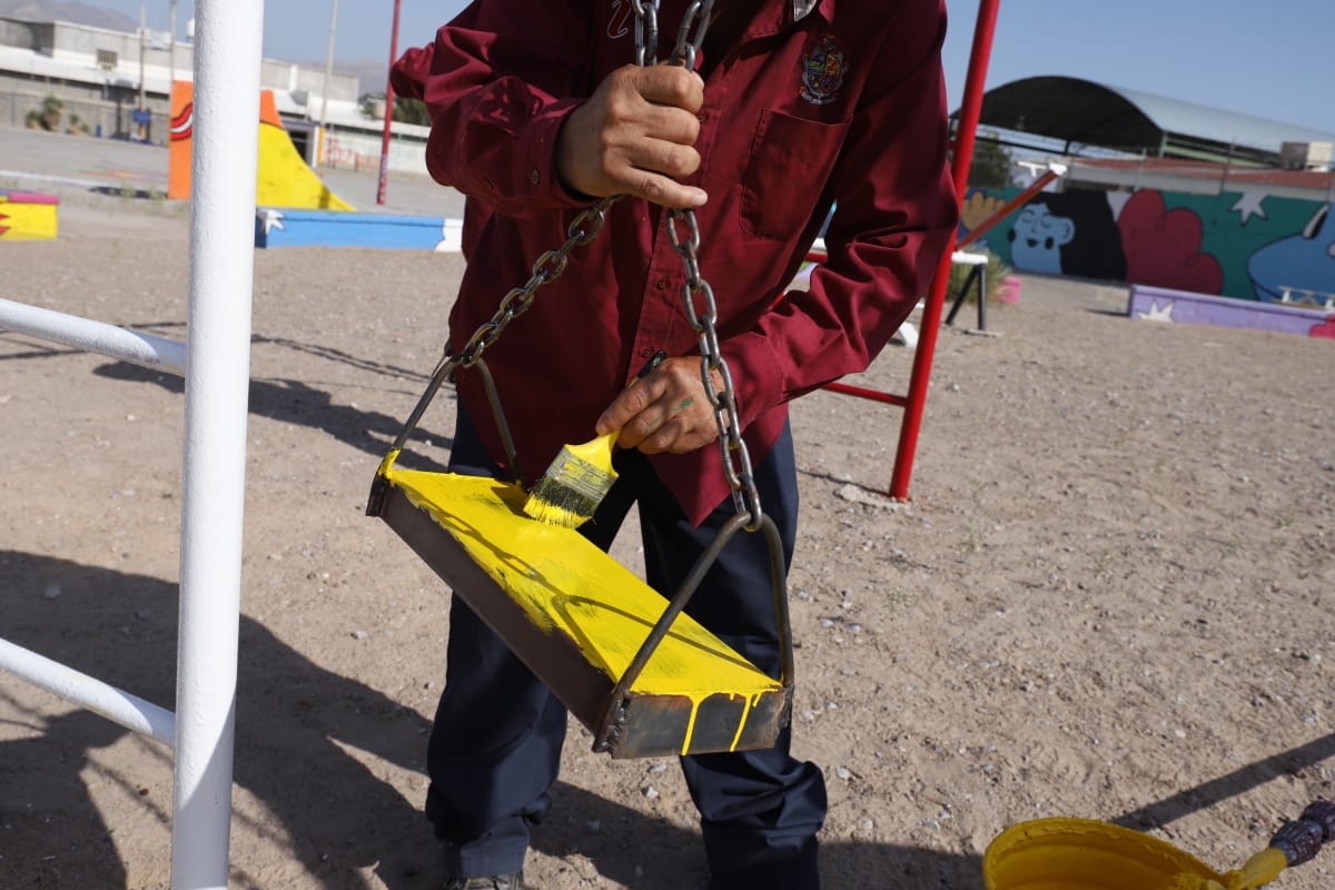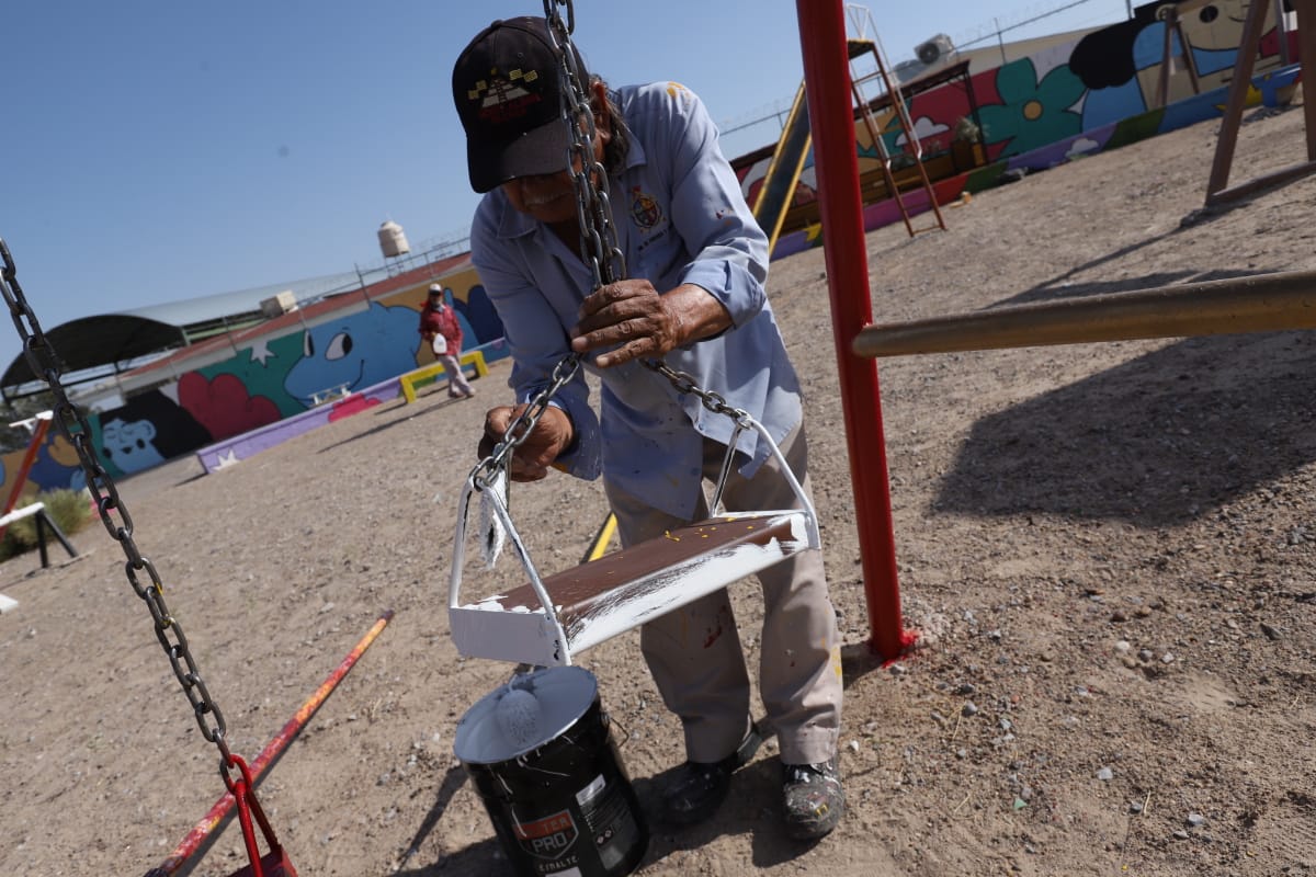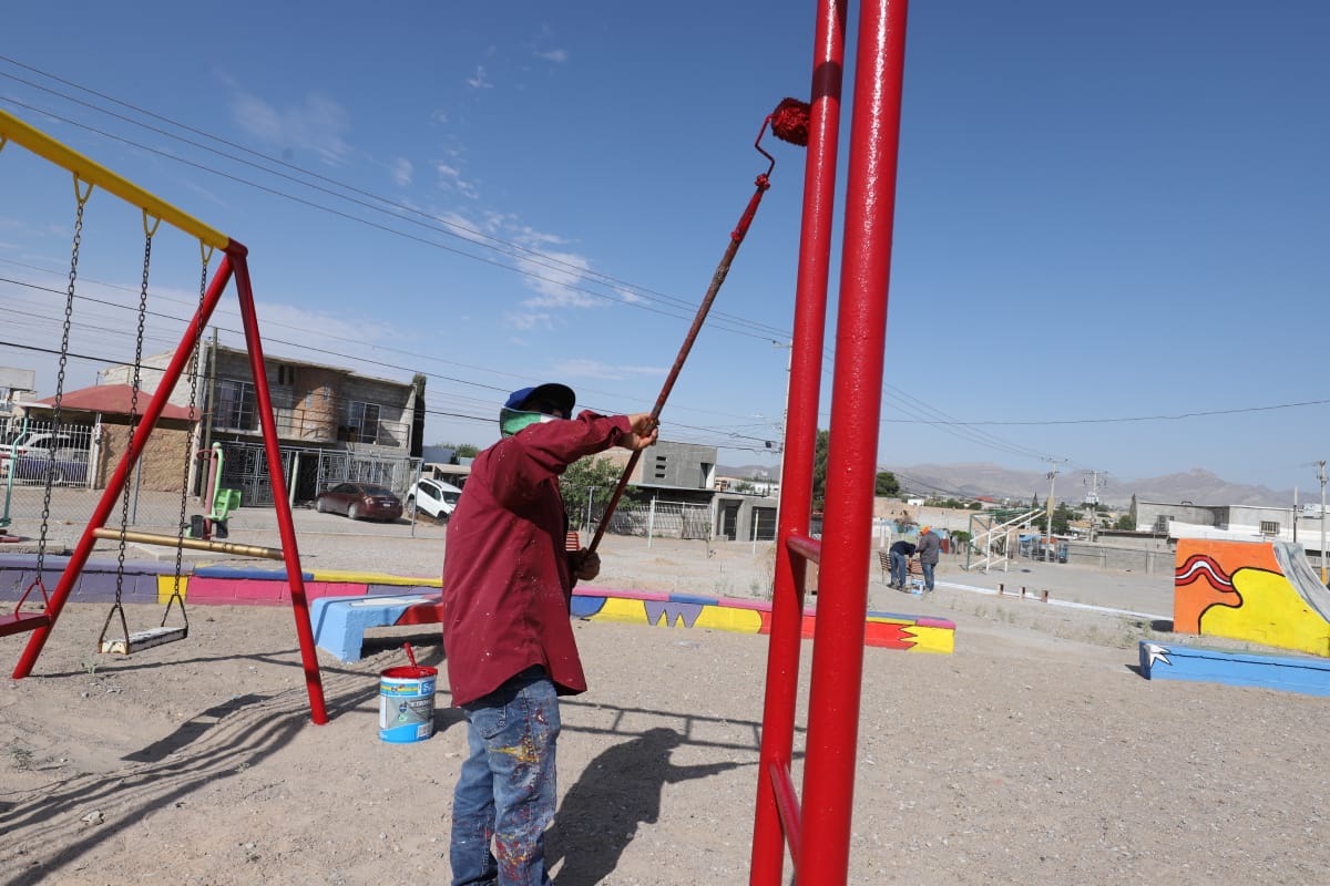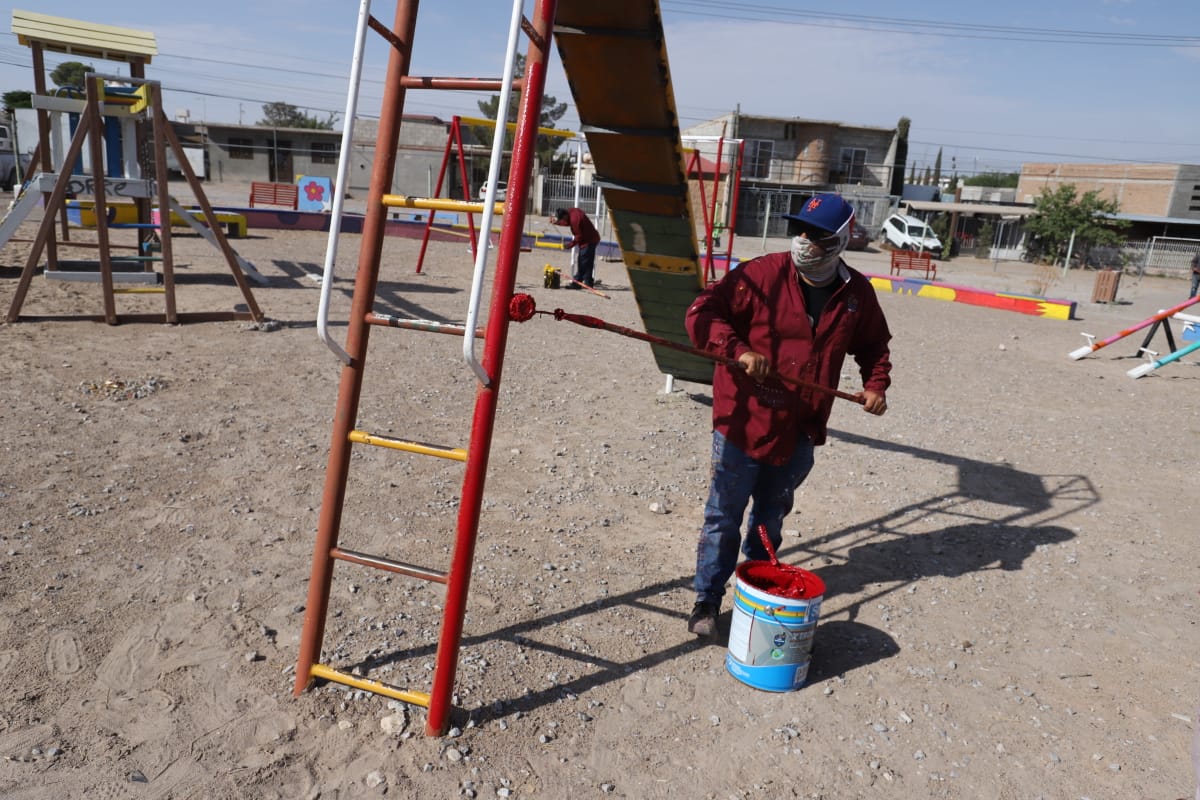 Daniel Zamarrón Saldaña, titular de la dependencia, informó que en el lugar trabajaron en el retiro de basura, corte y retiro de maleza, además de poda formativa, retiro de residuos y pintura de los juegos infantiles.