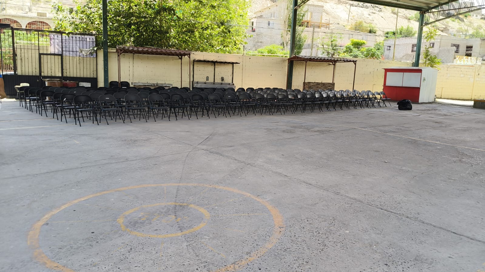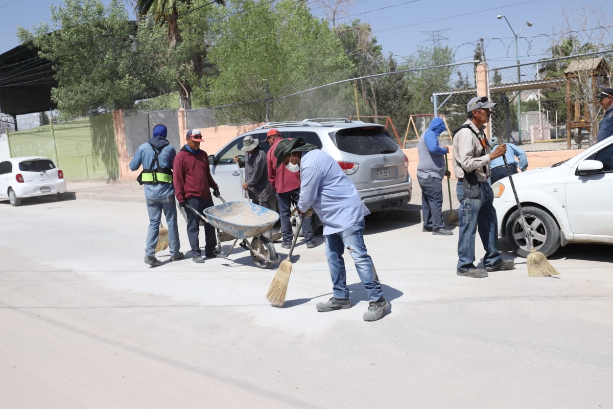 Además de las labores de limpieza, los trabajadores municipales colaboraron en el acomodo de sillas y preparación general del espacio para el evento escolar.