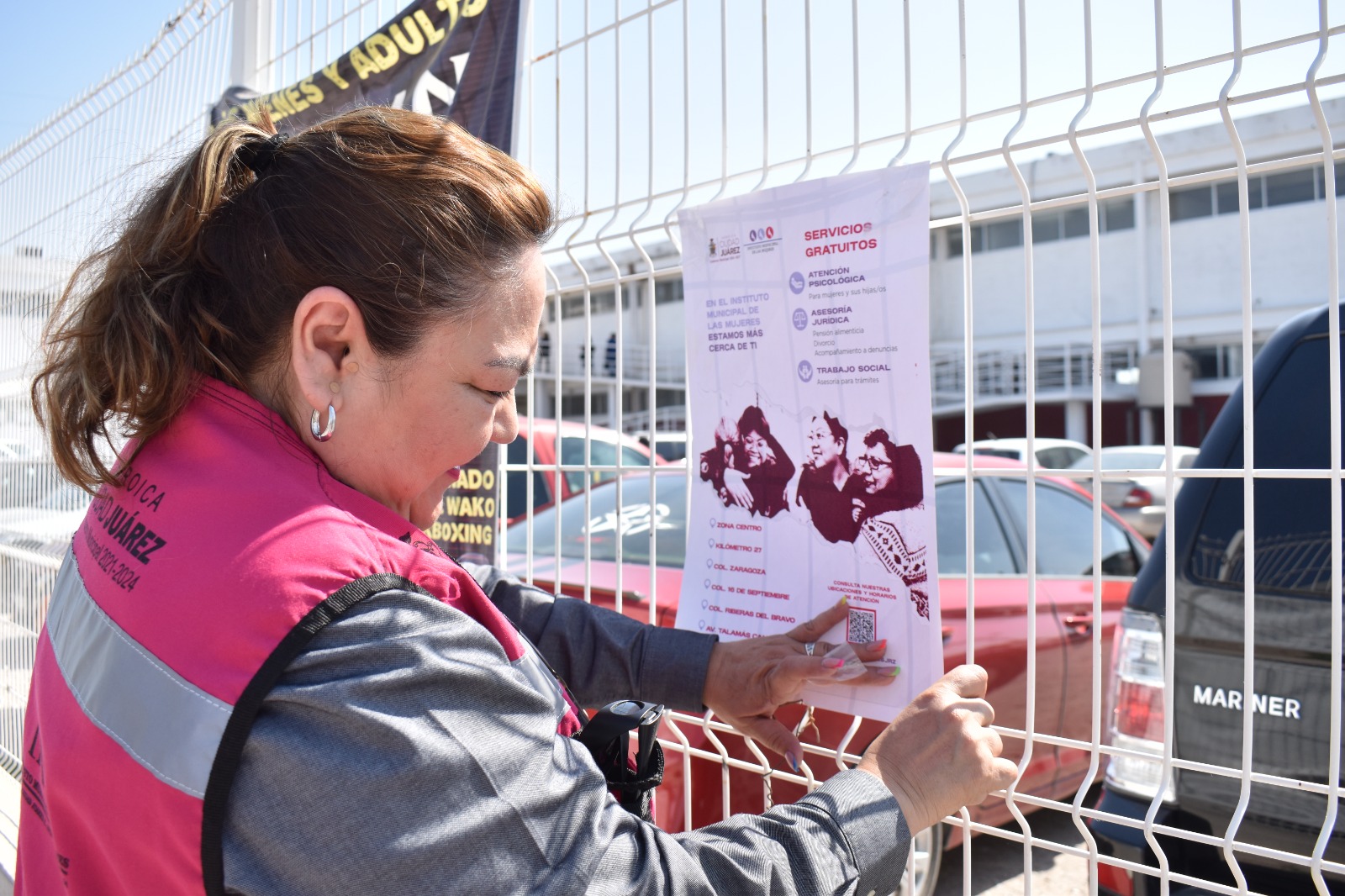 Con la finalidad de que más mujeres conozcan los servicios, el equipo multidisciplinario de Atención Especializada del IMM llevó a cabo un recorrido por diferentes zonas de la ciudad en las que realizó la pega de pósters informativos en lugares estratégicos.