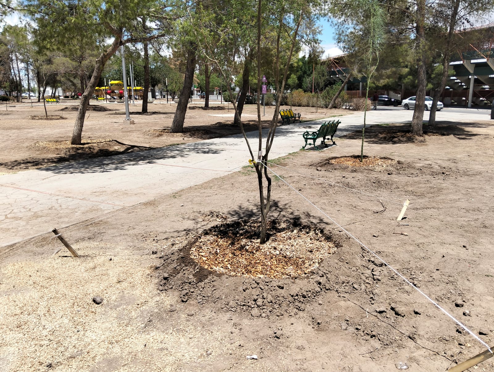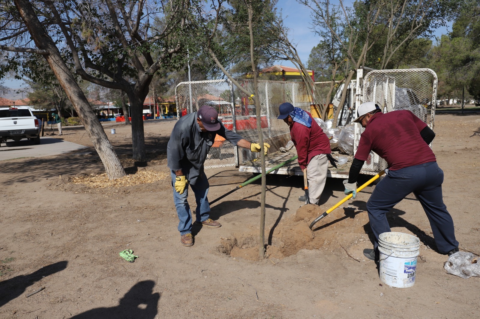 Continúan trabajos de mejora en áreas verdes del Parque Borunda con la plantación de 70 árboles