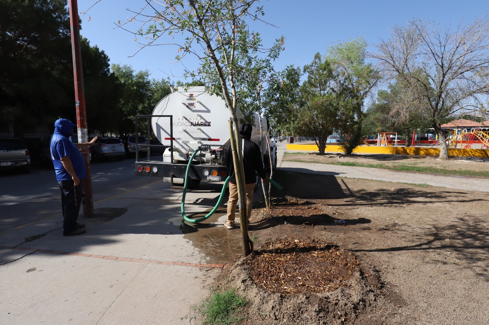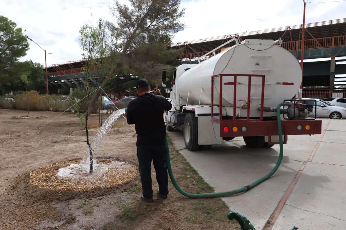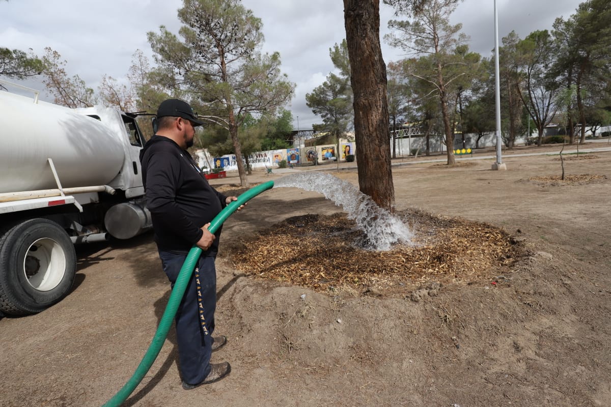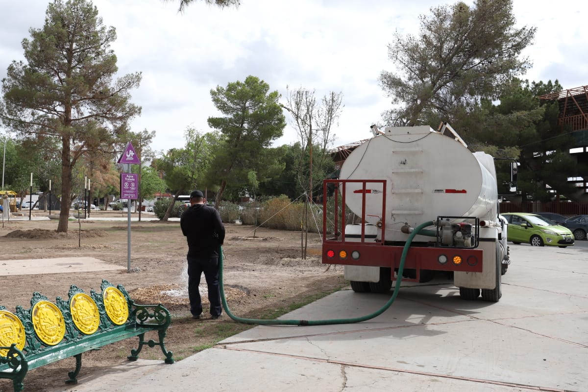 También señaló que en coordinación con la Junta Municipal de Agua y Saneamiento, se establecieron un par de cisternas que habilitan agua tratada al parque Borunda para garantizar el riego del área.