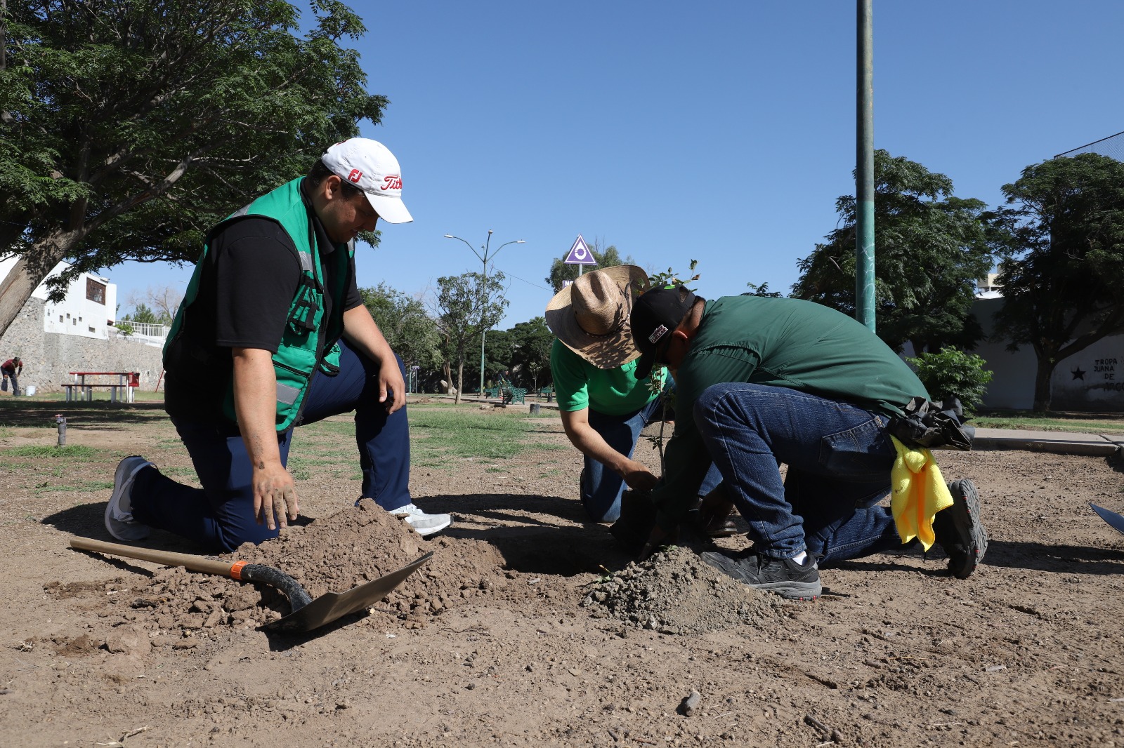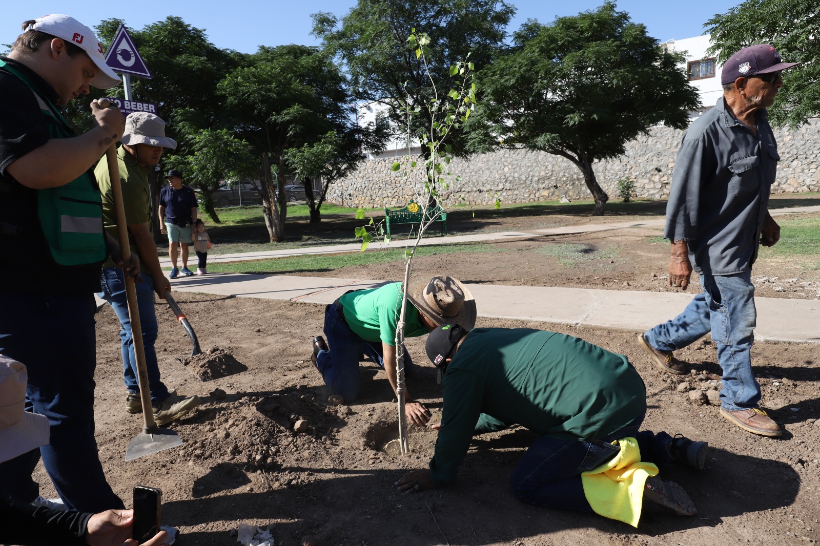 El titular de Parques y Jardines, Daniel Zamarrón Saldaña, señaló que la dependencia participó con una cuadrilla que se encargó de apoyar con la plantación de álamos y fresnos.