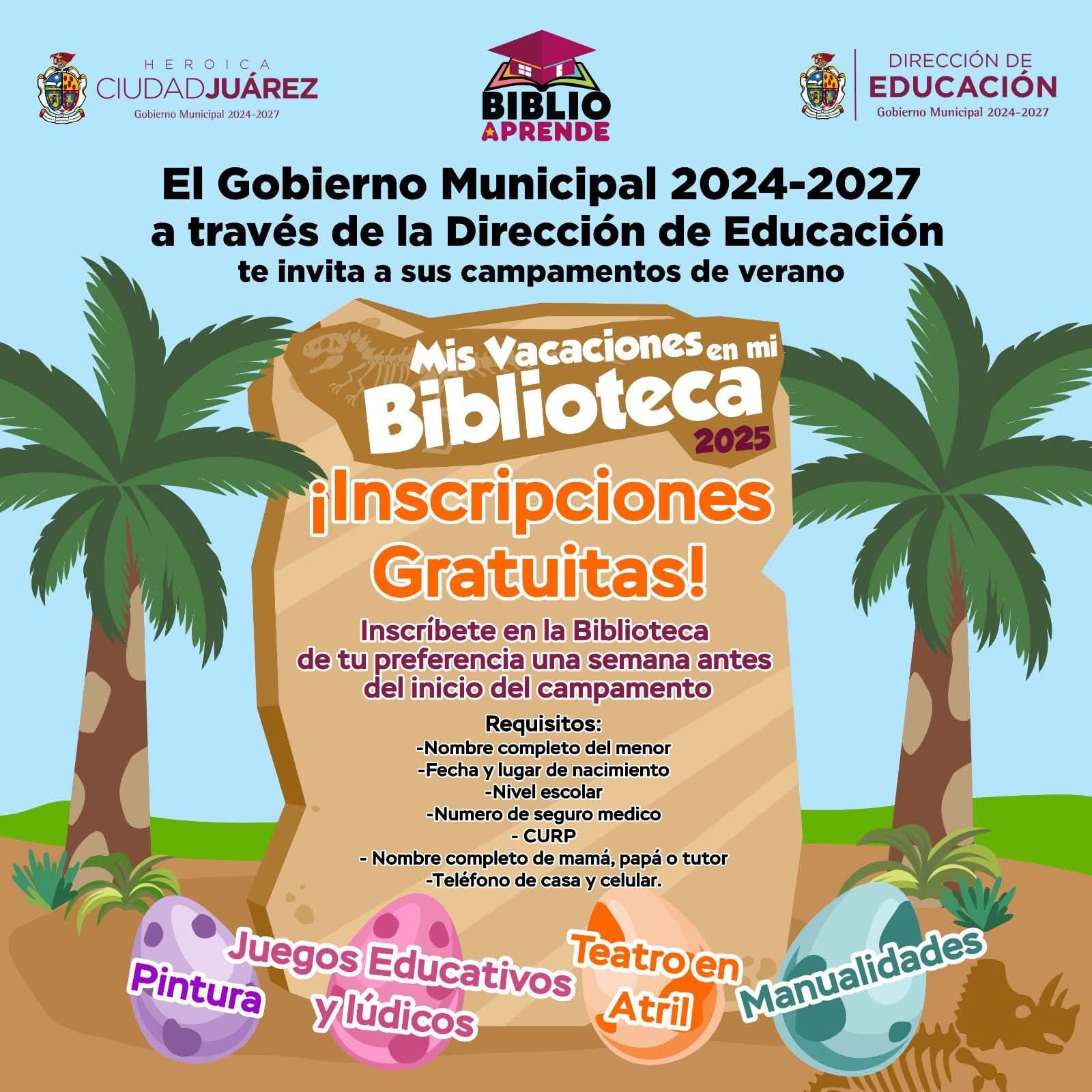 Todo se encuentra listo para que infantes de la localidad disfruten de “Mis vacaciones en mi biblioteca 2025”, dio a conocer el director de Educación, Guillermo Enrique Alvídrez Olivas.