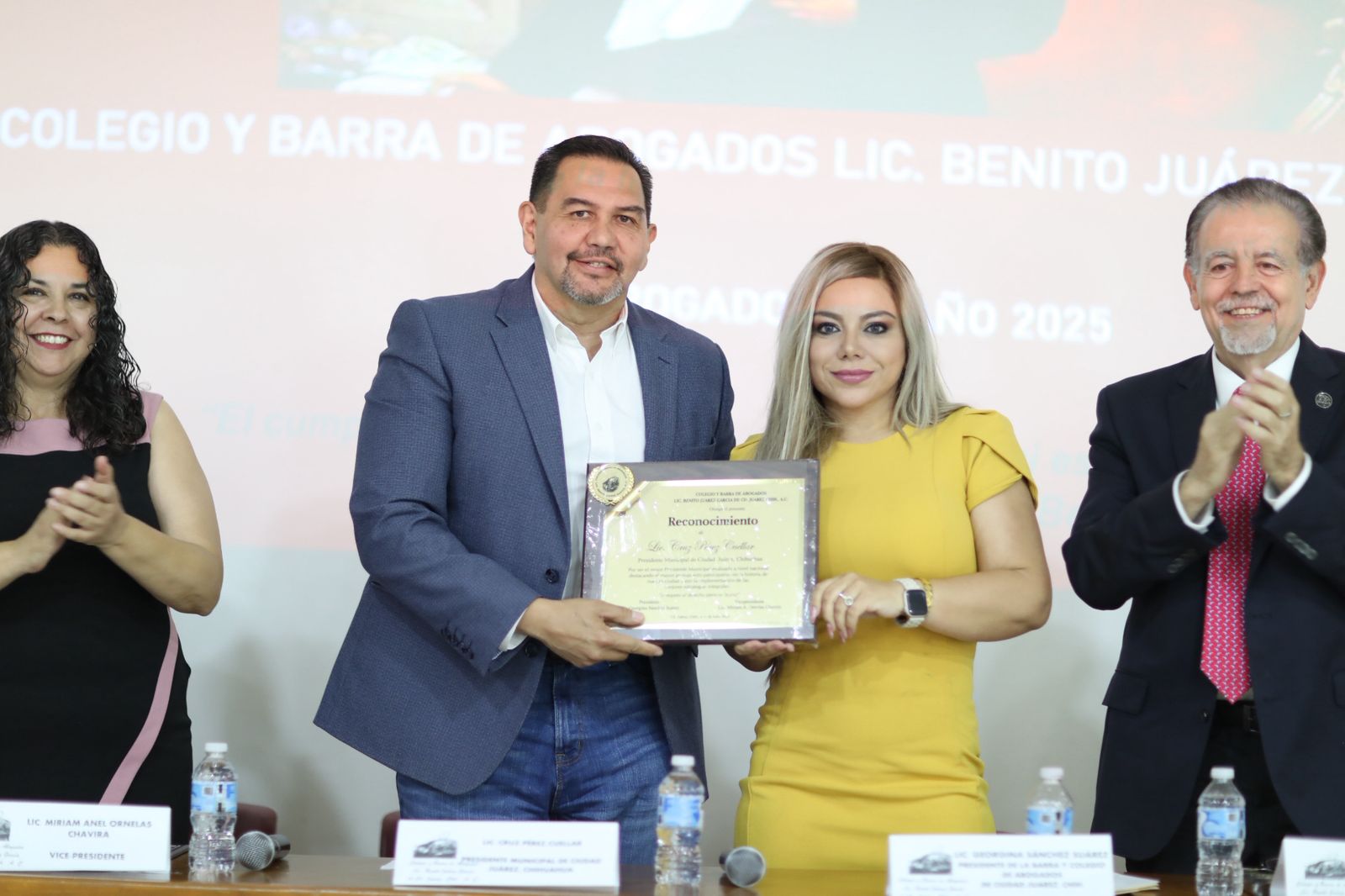 El alcalde recibió un reconocimiento por parte de la presidenta de la Barra y Colegio de Abogados, Georgina Sánchez Suárez, por ser el mejor presidente municipal evaluado del país y por la implementación de estrategias.