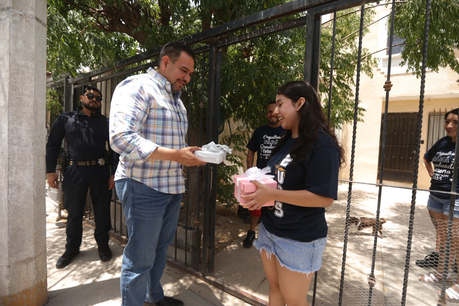 El Presidente Municipal, Cruz Pérez Cuéllar, visitó a Tábatha, una jovencita que hoy celebra 15 años y su graduación de secundaria.