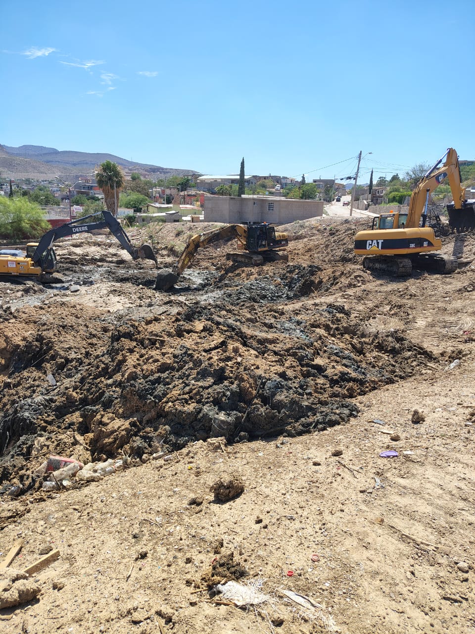 Como parte de los trabajos de apoyo a las familias y colonias afectadas por las fuertes lluvias, la Dirección General de Obras Públicas, continúa trabajando en la limpieza y el retiro de tierra de arrastre en vialidades de la colonia Plutarco Elías Calles, ubicada al norponiente de la ciudad.