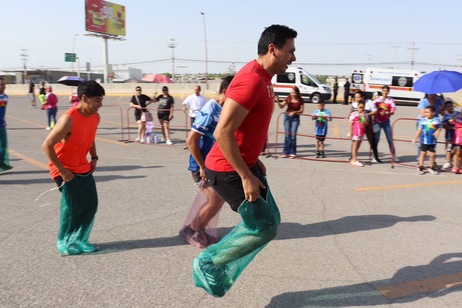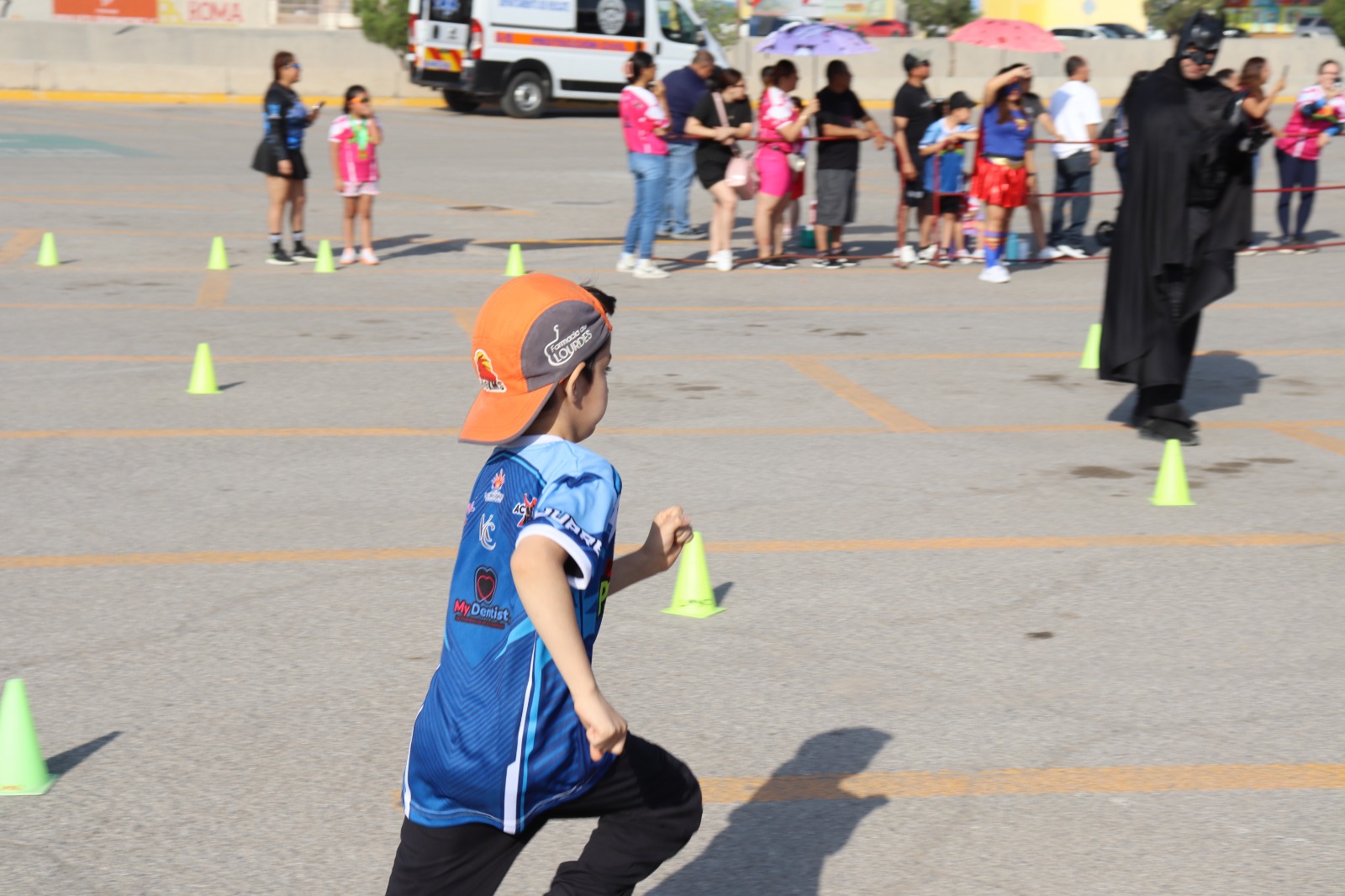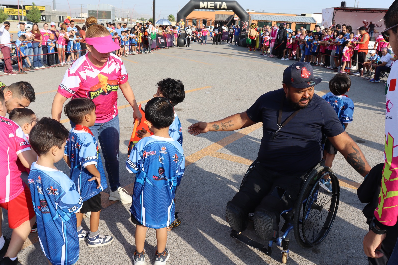 La fiesta infantil, organizada por el Instituto Municipal del Deporte y Cultura Física de Juárez, se llevó a cabo en el estacionamiento del Centro Comercial Las Misiones a las 8:00 de la mañana; según su edad fueron las distancias que recorrieron.