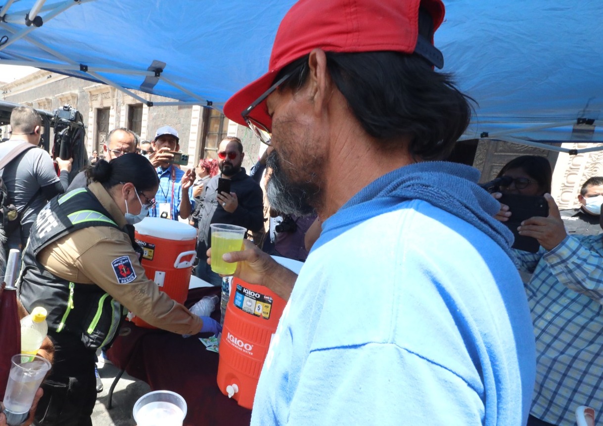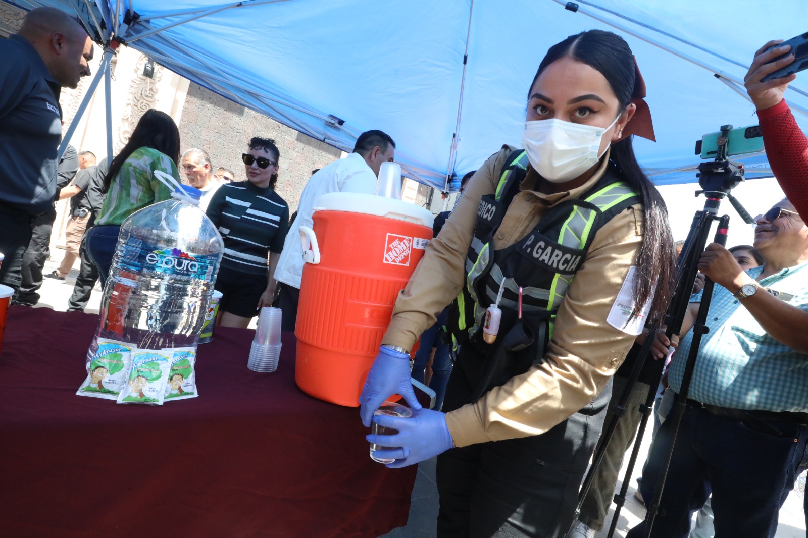 Protección Civil entregó más de 5 mil vasos de bebida hidratante a peatones en la Zona Centro