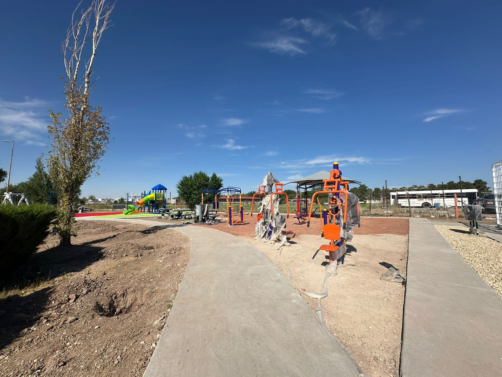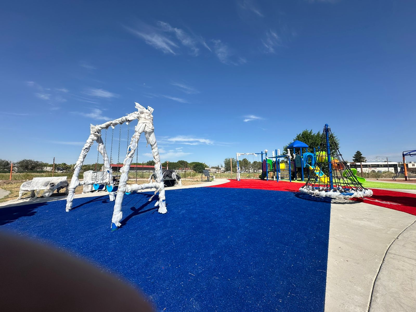 Comentó que se trabaja actualmente en la colocación de los juegos infantiles y pasto sintético de colores.