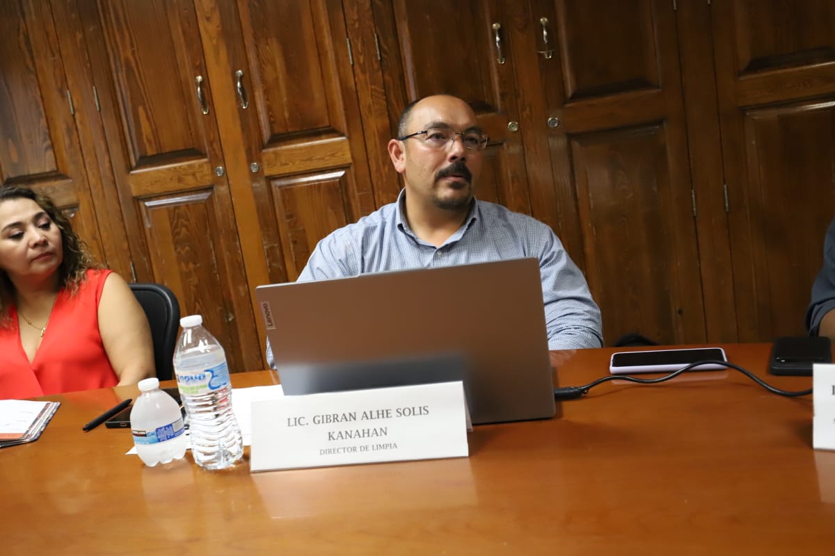 El director de Limpia, Gibran Solís Kanahan, participó en la sesión ordinaria de la Comisión edilicia de Ecología y Protección Civil, donde presentó los avances y resultados de los programas Punto Limpio en tu Colonia y Recolección Diferenciada de Residuos.