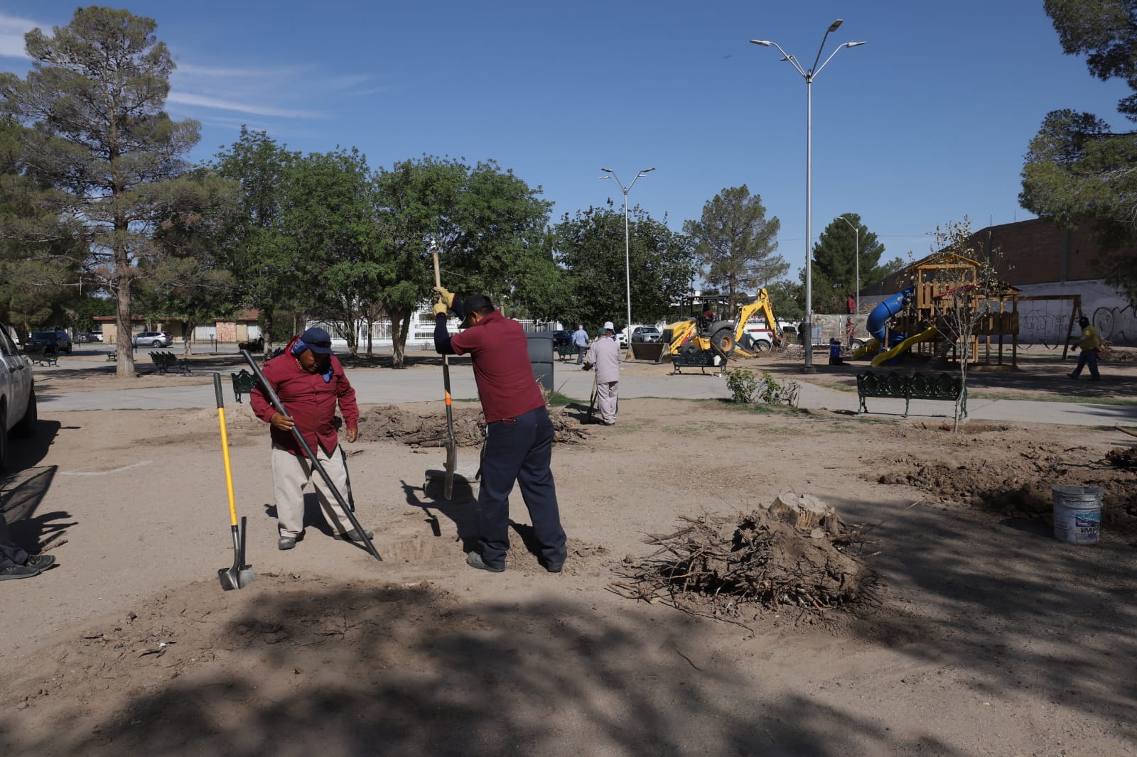 La Dirección de Parques y Jardines del Municipio continúa con los trabajos de mantenimiento y rehabilitación en el Parque Borunda, ubicado entre las avenidas Vicente Guerrero y 16 de Septiembre, en la colonia Partido Romero, como parte de los esfuerzos para conservar y dignificar los espacios públicos de la ciudad.