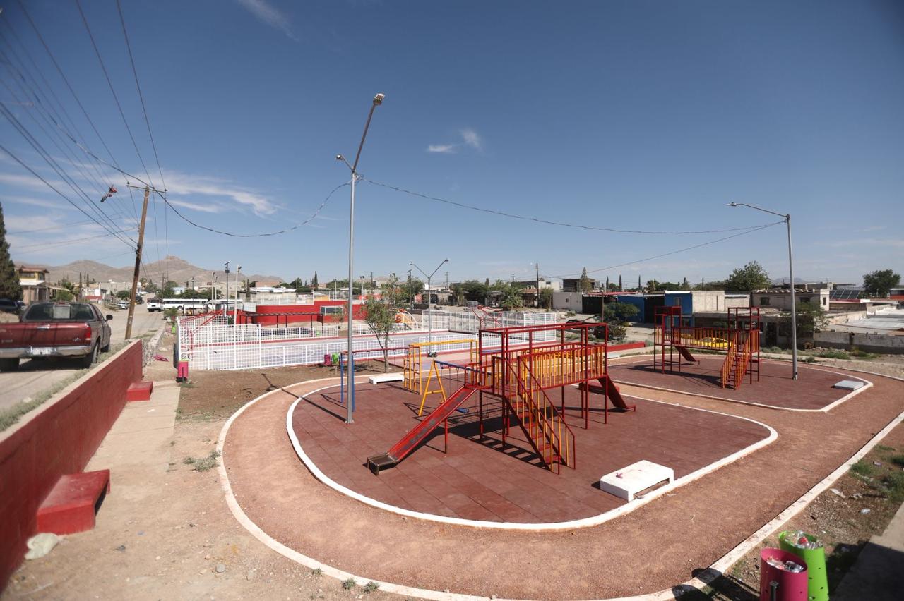 La Dirección General de Obras Públicas informó que se trabaja en detalles de rehabilitación, para hacer entrega del parque División del Norte, ubicado entre las calles Francisco Villa y Quinta, de la colonia División del Norte.