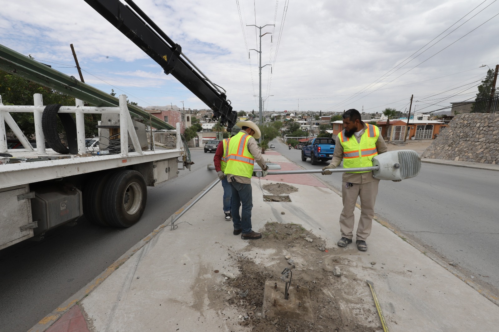 Repone Alumbrado Público arbotantes en avenida División del Norte