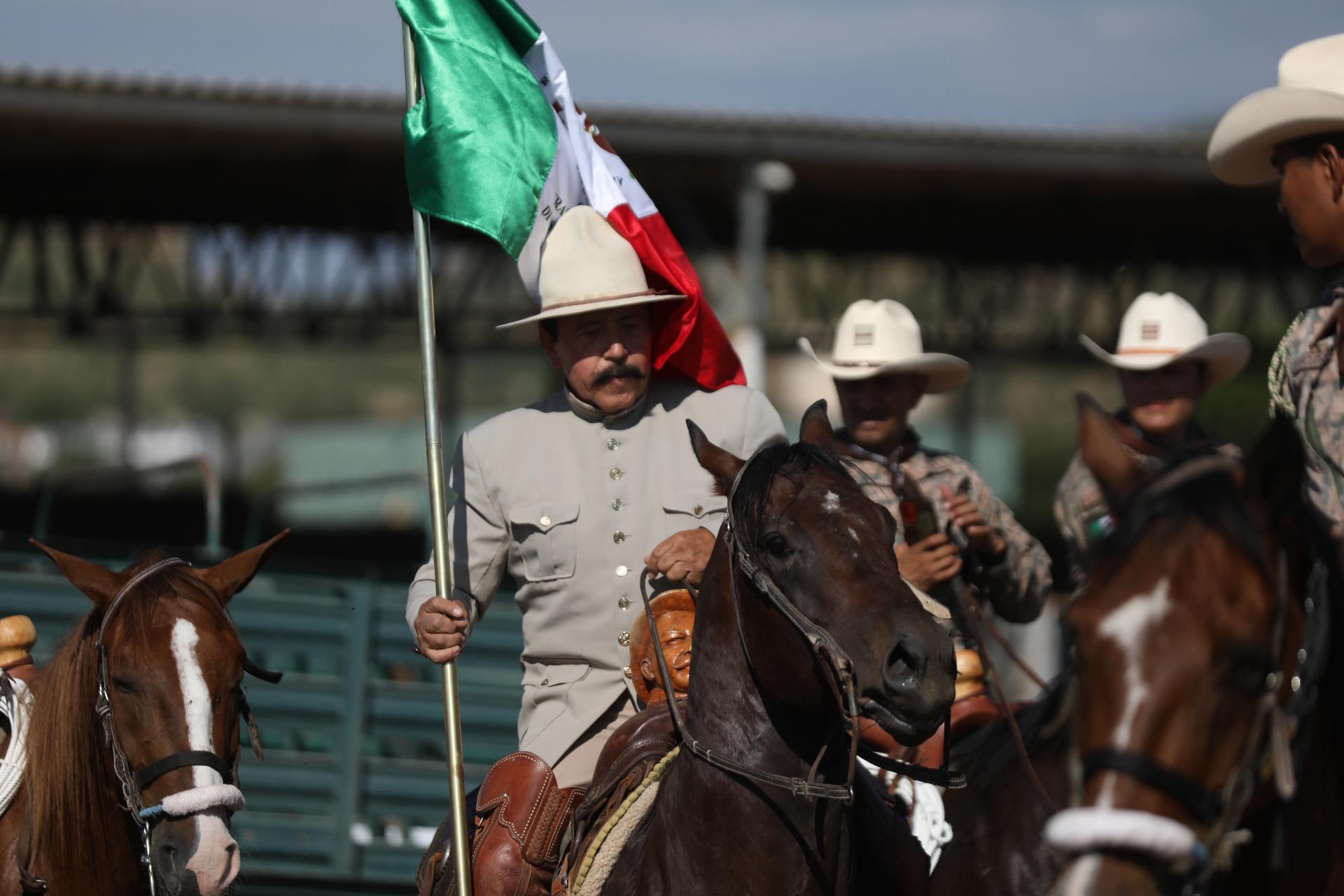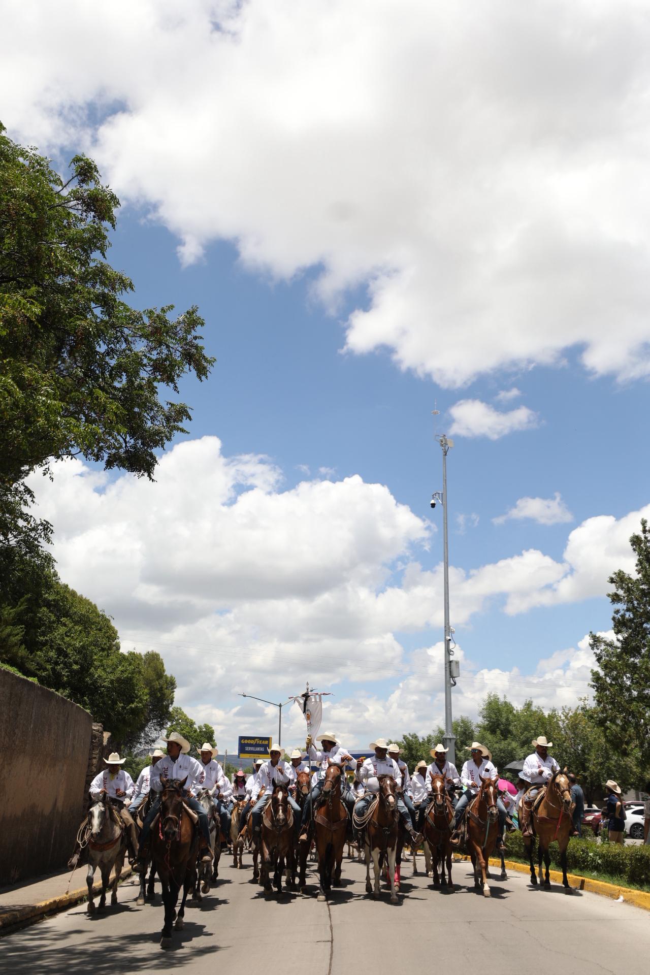 El contingente de jinetes juarenses arribó este día a Hidalgo del Parral, donde se llevan a cabo diversas acciones en el marco del 102 aniversario luctuoso del general Francisco Villa.