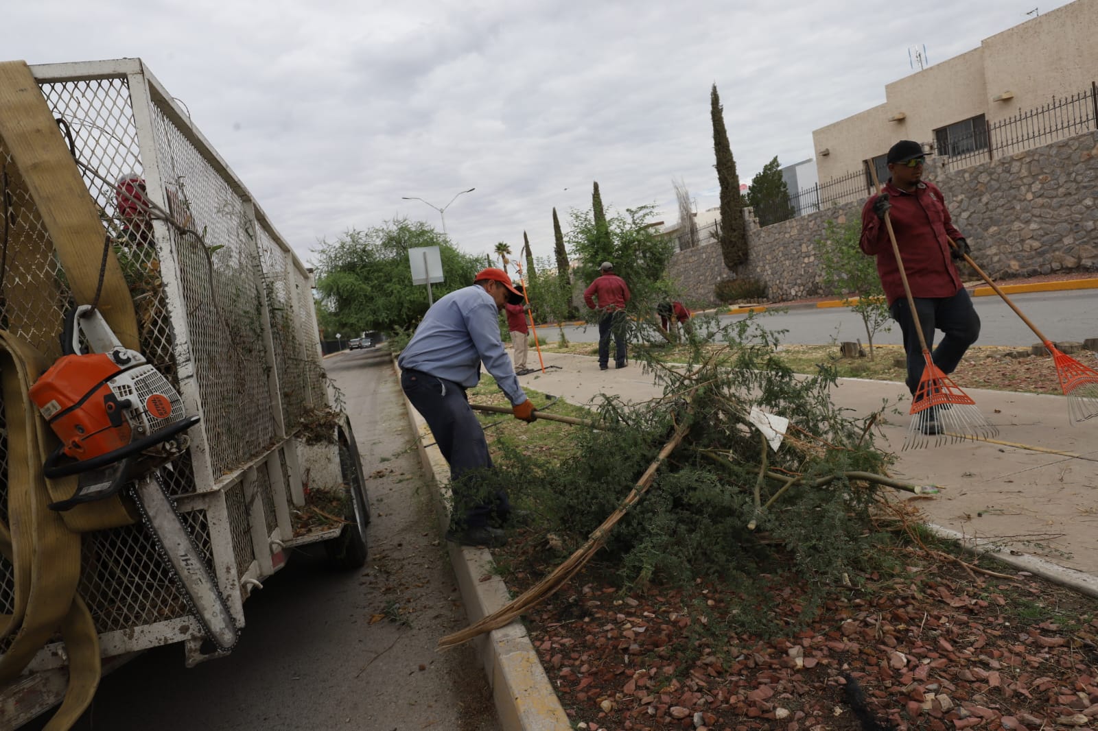 Ante los recientes temporales registrados en la región, la Dirección de Parques y Jardines ha intensificado las labores de atención en distintos puntos de la ciudad, tanto en parques y otros espacios públicos, como en áreas afectadas por las lluvias y las ráfagas de viento.