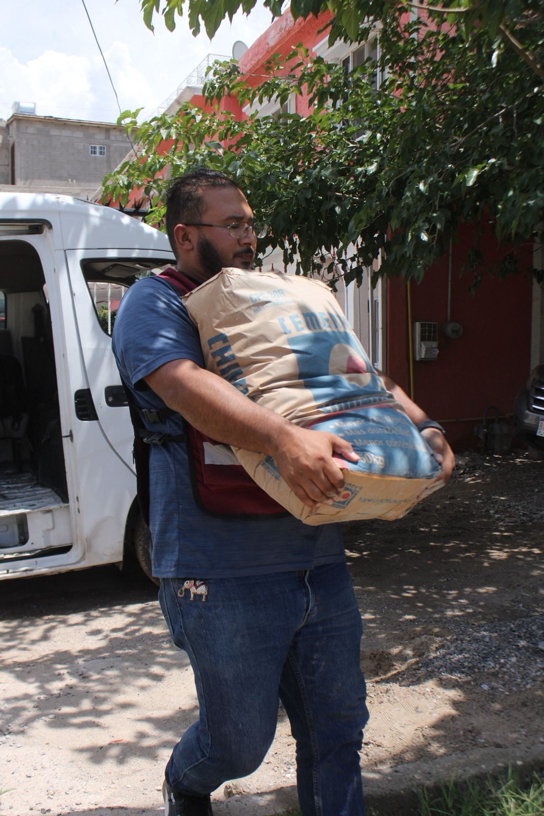 Dijo que dentro del material que les está siendo entregado se encuentran sacos de cemento, impermeabilizante acrílico junto con su rollo de tela, impermeabilizante de caucho, así como cubetas de pintura.