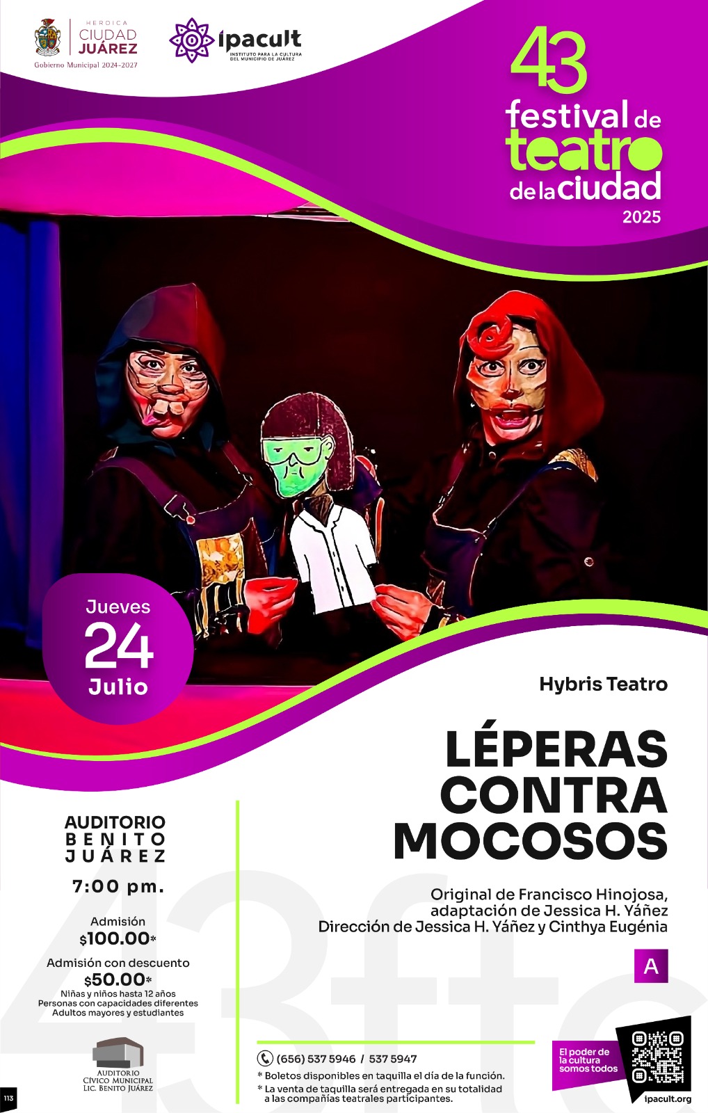 El escenario del Auditorio Cívico Benito Juárez recibirá este jueves una propuesta escénica divertida y desobediente: “Leperas contra mocosos”, obra presentada por la compañía Hybris Teatro dentro de la edición 43 del Festival de Teatro de la Ciudad.