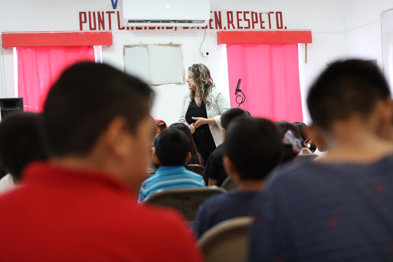 Casi medio centenar de niñas y niños del Centro Comunitario del Kilómetro 20 participaron en una actividad educativa organizada por el Sistema Municipal de Protección Integral de Niñas, Niños y Adolescentes (SIPINNA), encabezada por su titular, Laura Mónica Marín Franco.