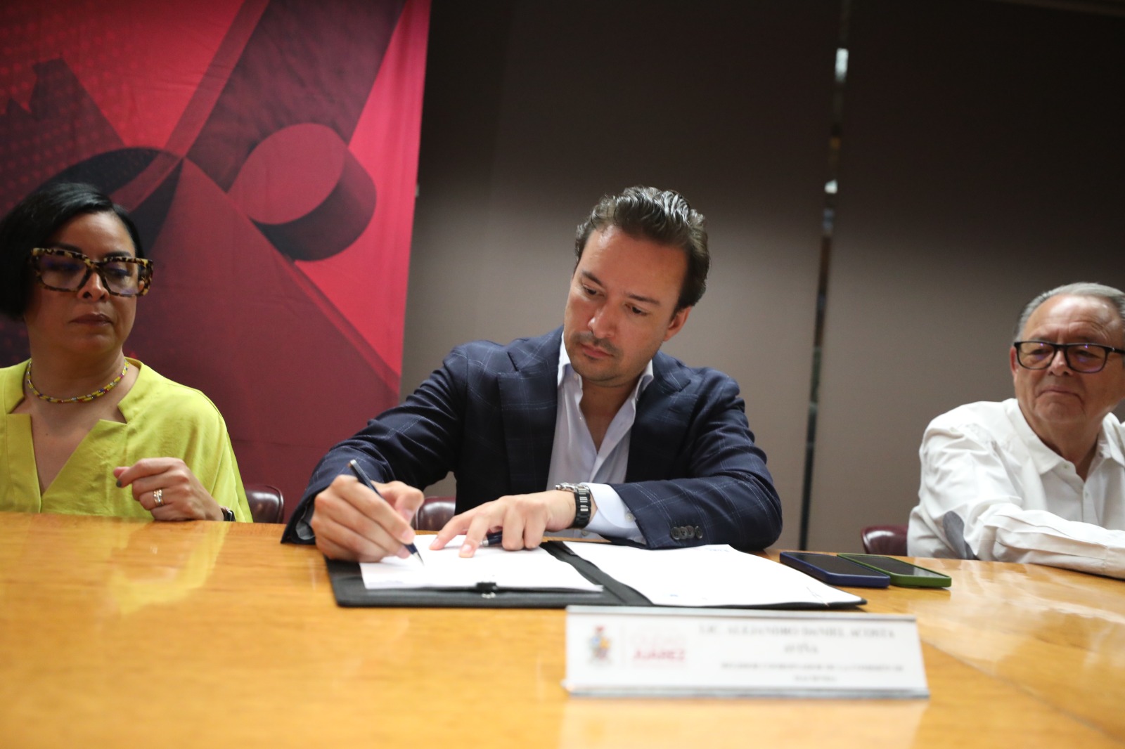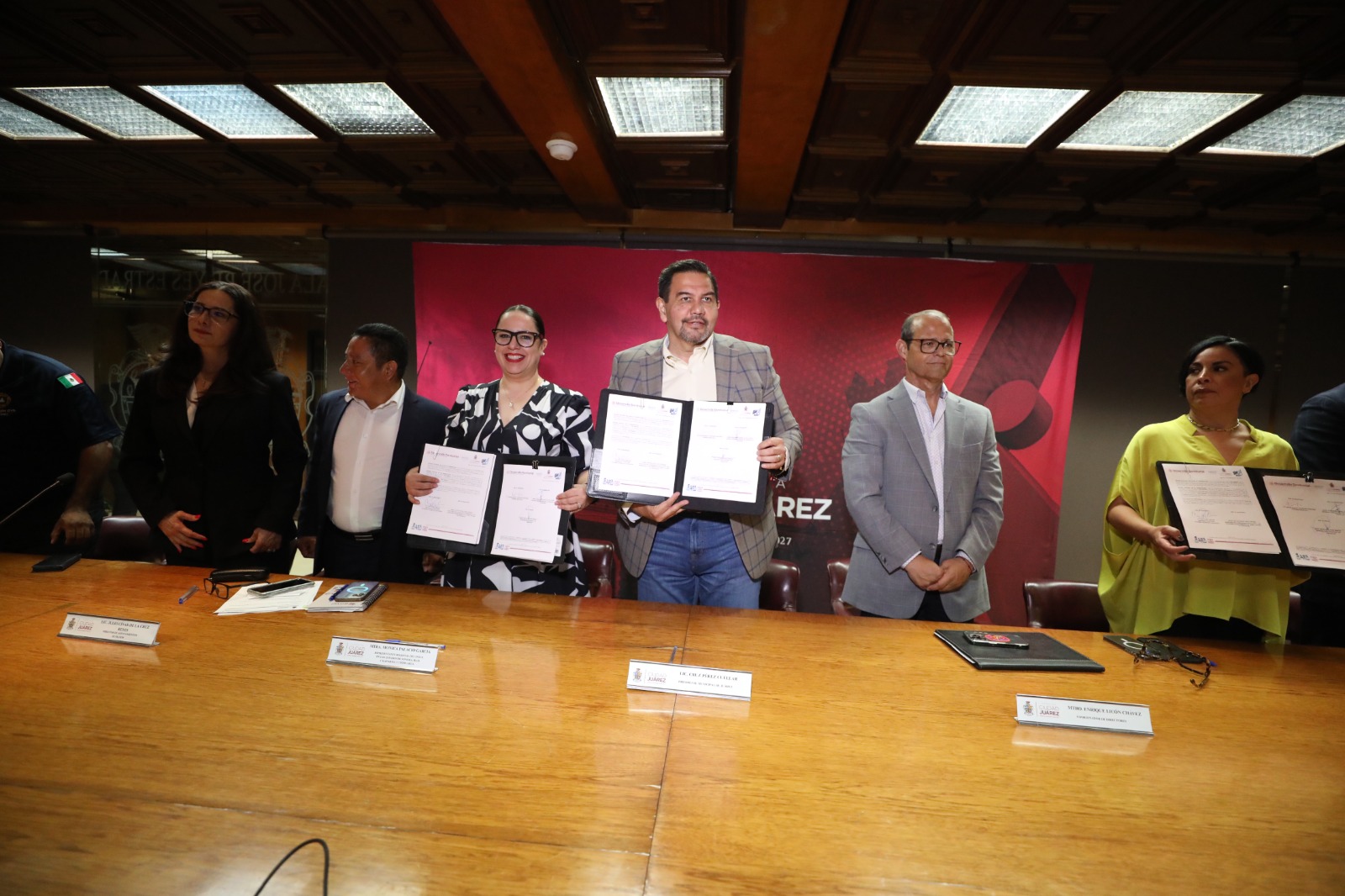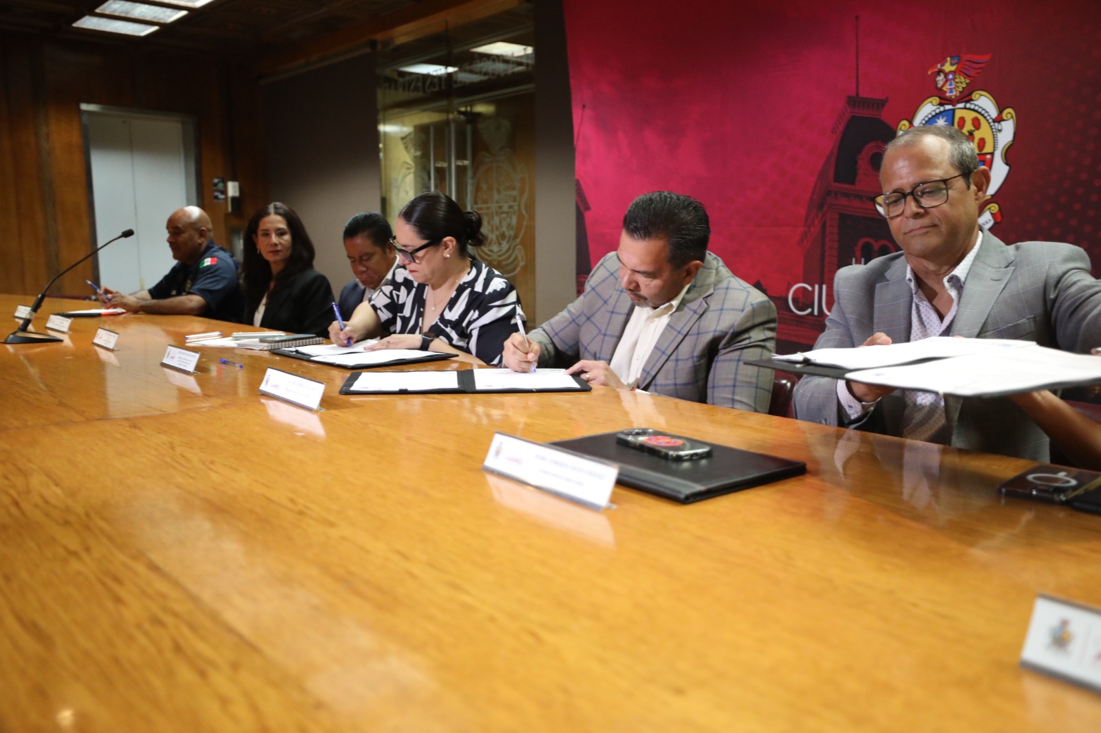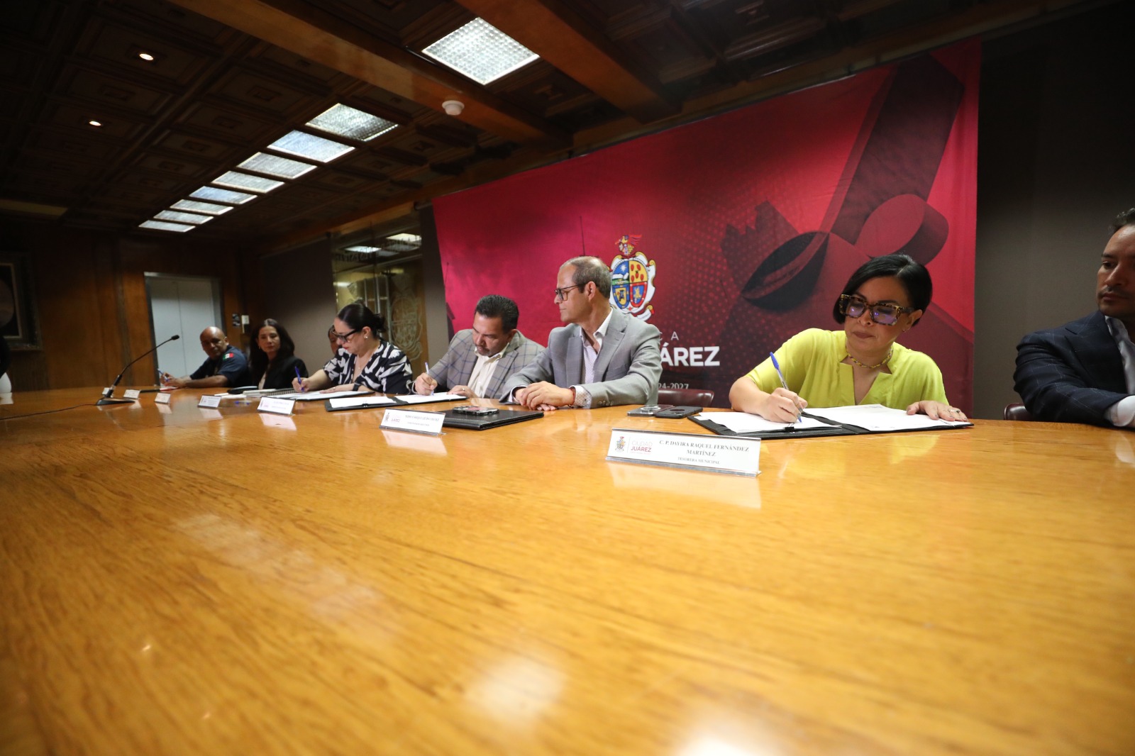 En la firma estuvieron la directora general de Desarrollo Urbano, Claudia Morales; el titular de Protección Civil, Sergio Rodríguez; el regidor Alejandro Acosta Aviña; la tesorera Dayira Raquel Fernández y el coordinador de asesores, Roberto Barraza.