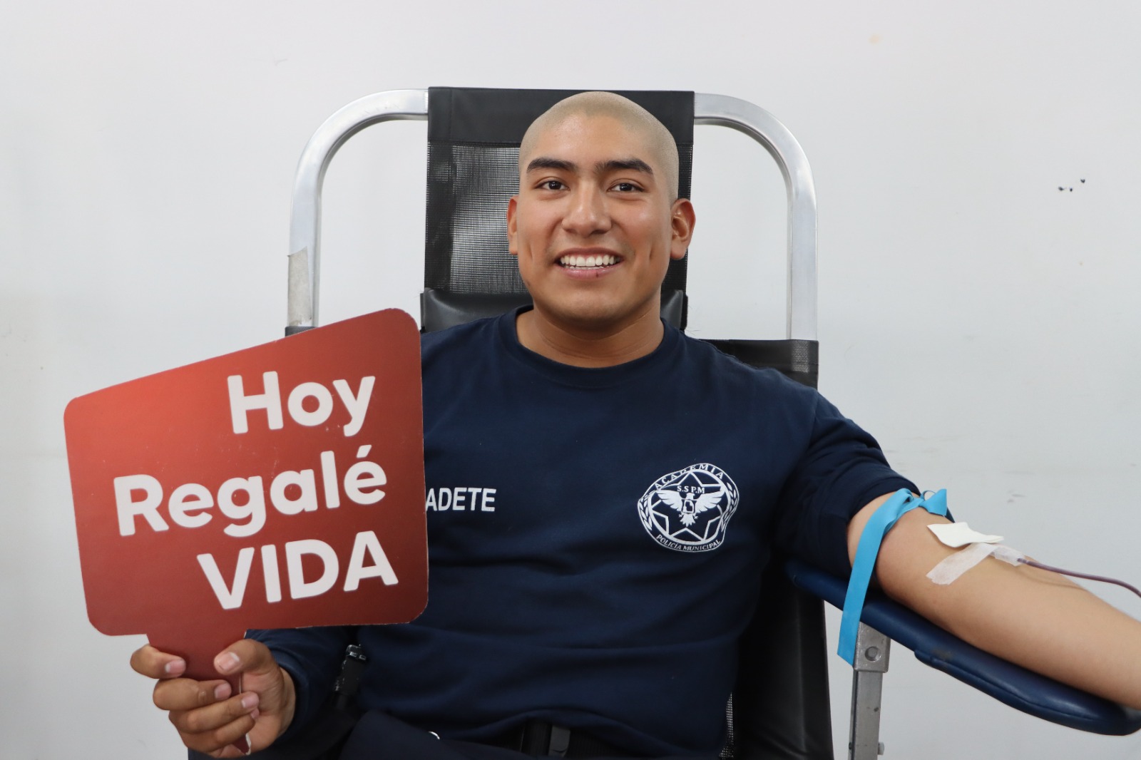 Cadetes de la Academia Municipal de Policía que se encuentran en la etapa de formación inicial del curso básico para policía de proximidad de la Secretaría de Seguridad Pública Municipal, se sumaron a una campaña altruista de donación de sangre ayer lunes 28 y hoy martes 29.