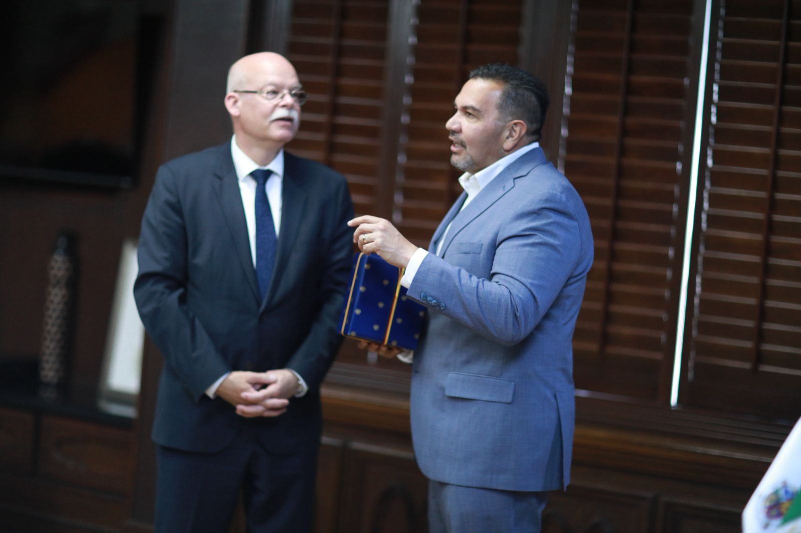 El Presidente Municipal, Cruz Pérez Cuéllar, recibió esta tarde la visita del embajador de Alemania en México, Clemens Von Goetze.