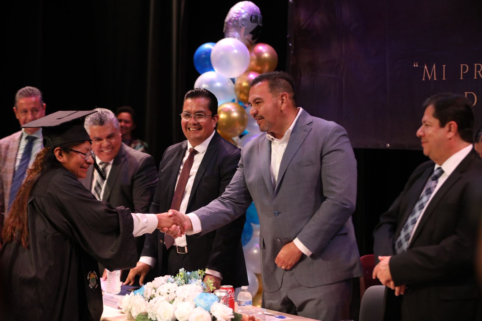 “Felicidades a todas y todos los que hoy terminan su preparación académica desde preescolar hasta doctorado, así como a la asociación por organizar este evento tan importante”, dijo el Presidente Pérez Cuéllar.