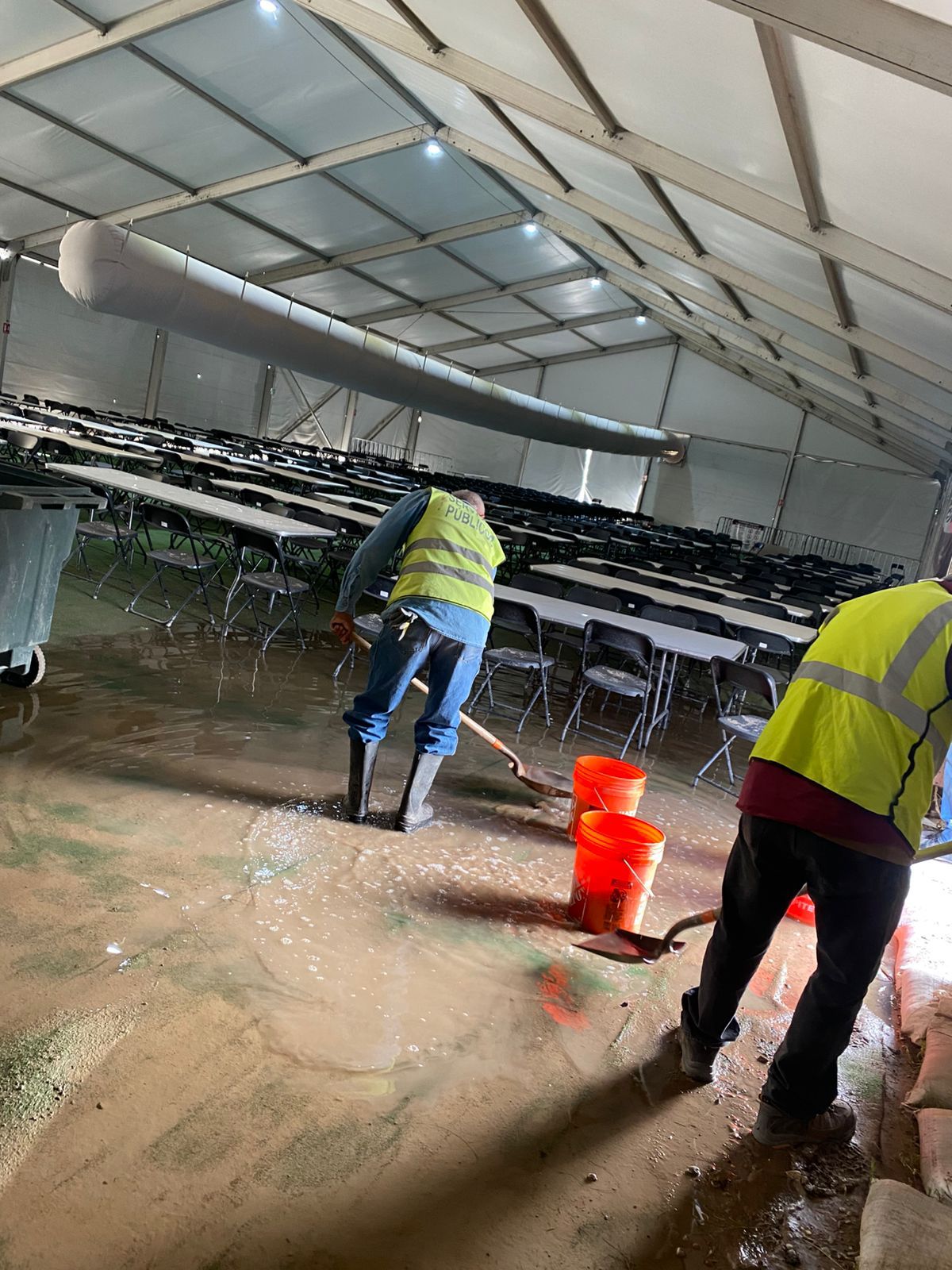 El funcionario dijo que además de la jornada de limpieza, las cuadrillas estuvieron auxiliando con el retiro de agua de lluvia que ingresó al interior del campamento, debido a las recientes precipitaciones que se registraron en la ciudad.