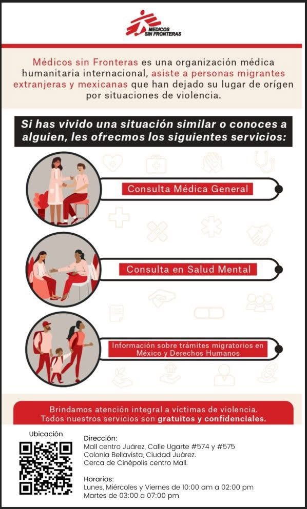 Comentó que Médicos Sin Fronteras es una organización humanitaria internacional que asiste a personas migrantes y mexicanas que han dejado su lugar de origen por situaciones de violencia.