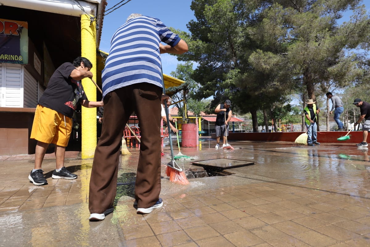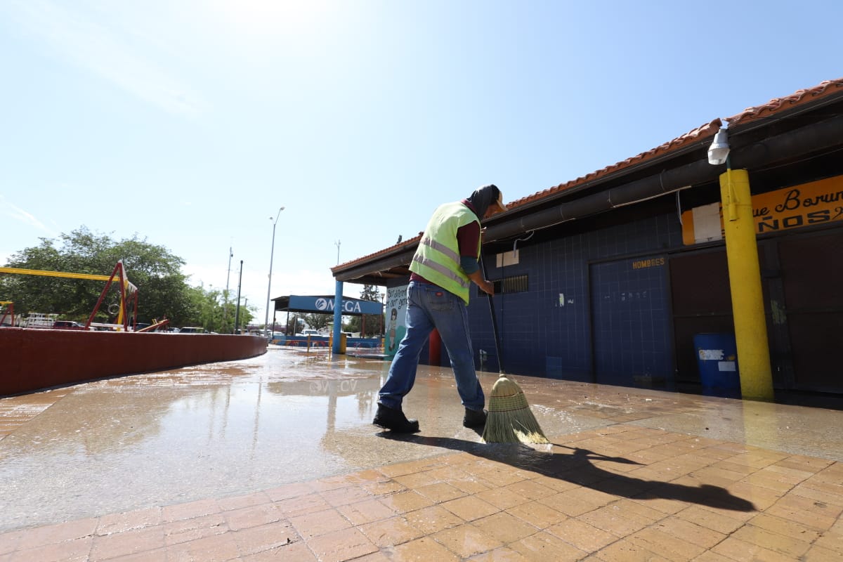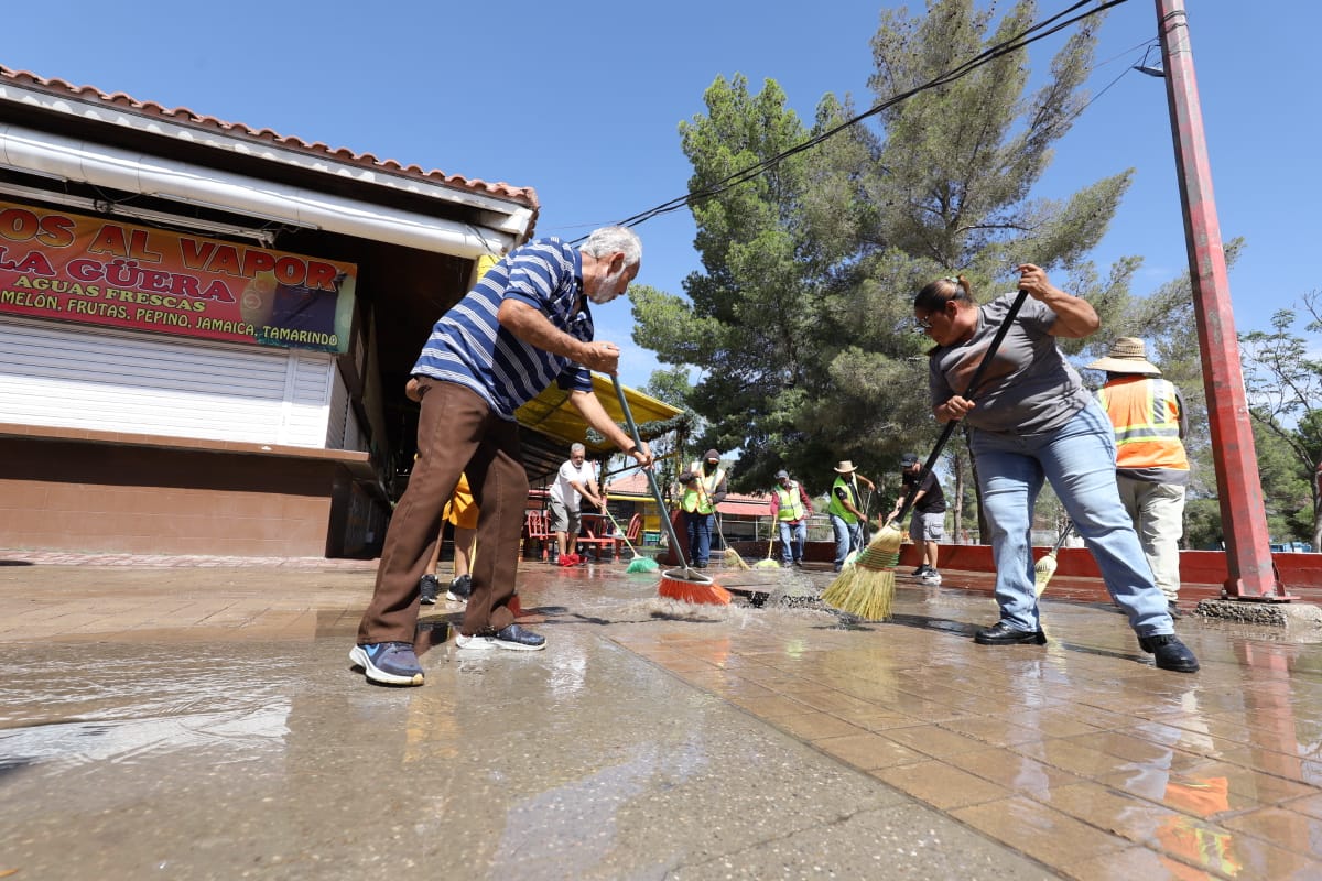 La Dirección General de Servicios Públicos, a través de la Dirección de Limpia, llevó a cabo la quinta jornada de limpieza y mejoramiento en el Parque Borunda, con el apoyo de comerciantes del lugar.