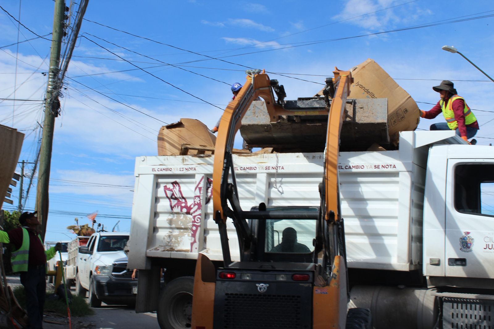 El director de Limpia, Gibran Solís Kanahan, indicó que las acciones se realizan especialmente para proteger la integridad física de los juarenses, ya que sacaron cajas de gran tamaño conocidas como gaylord, mismas que estaban llenas de plástico, considerado material altamente inflamable.