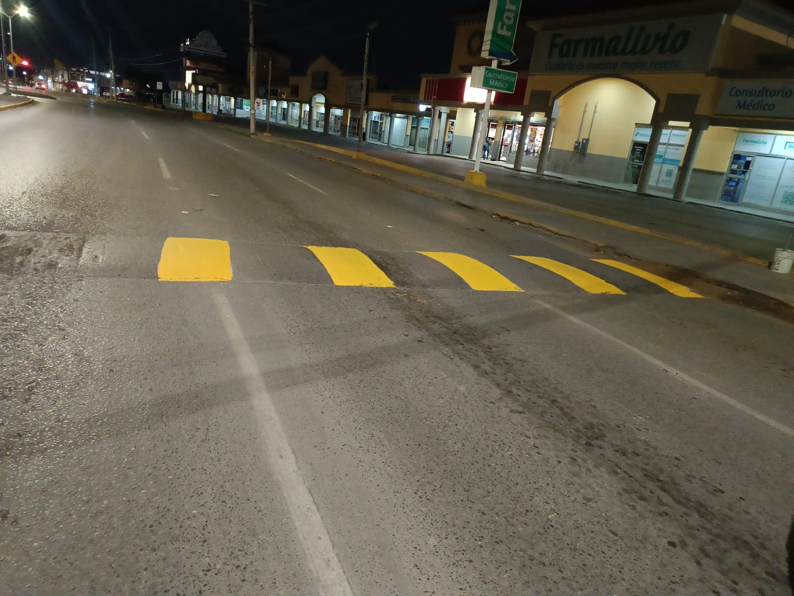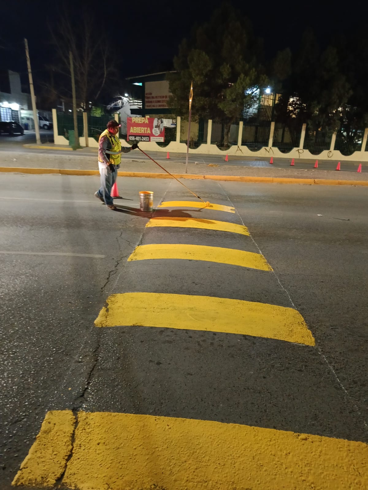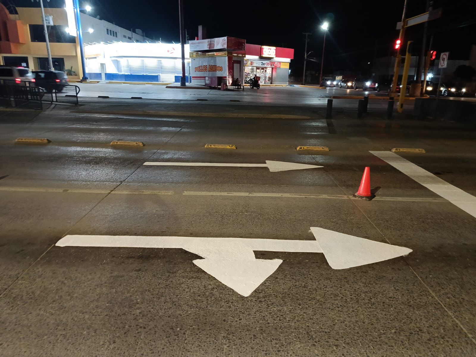 También se hicieron trabajos de pintura sobre el bulevar Zaragoza, esquina con calle Durango, en la colonia Salvárcar, donde se pintaron líneas de frenado y flechas.