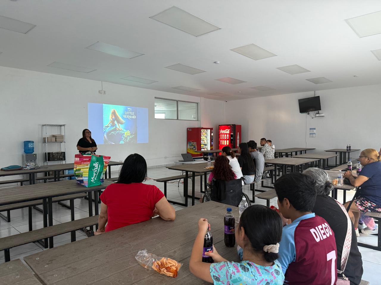 Con el fin de llevar una amena convivencia entre los migrantes que se encuentran en el albergue Municipal Felipe Ángeles, se llevó a cabo una función especial de cine con la proyección de la película La Sirenita.