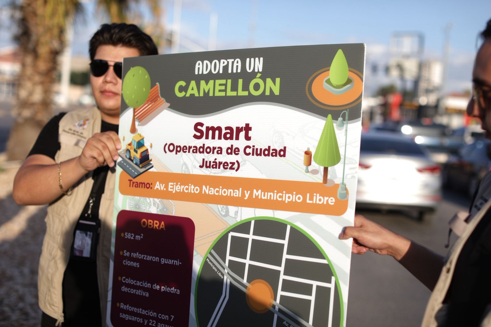 El Presidente Municipal, Cruz Pérez Cuéllar, recibió este viernes la rehabilitación del camellón ubicado en las avenidas Municipio Libre y Ejército Nacional, como parte del programa Adopta un Camellón, impulsado por la Dirección General de Desarrollo Urbano en convenio con la empresa Smart.