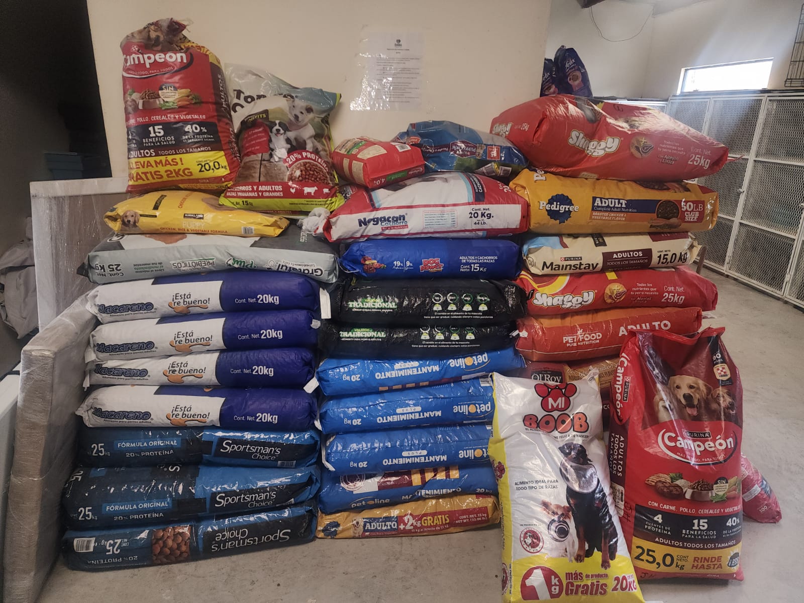 Explicó que dichos insumos fueron distribuidos entre las asociaciones animalistas y rescatistas que forman parte del Banco de Alimentos DABA, quienes diariamente alimentan a más de 1,600 perros y 500 gatos.