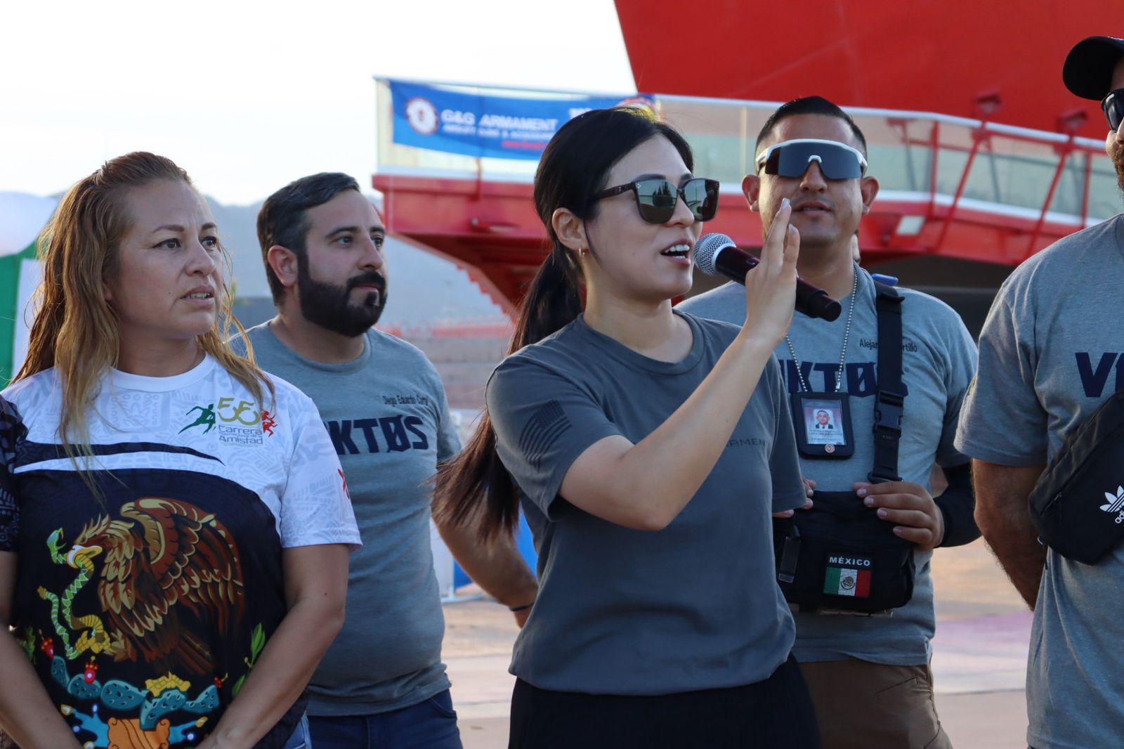 “En nombre del Presidente Municipal, Cruz Pérez Cuellar, les doy la bienvenida a este evento nacional e internacional que da una clasificación al mundial a Taiwán; siendo las 7:10 de este sábado 2 de agosto queda inaugurado el Sport Fest y AirSoft 2025”, dijo el director.