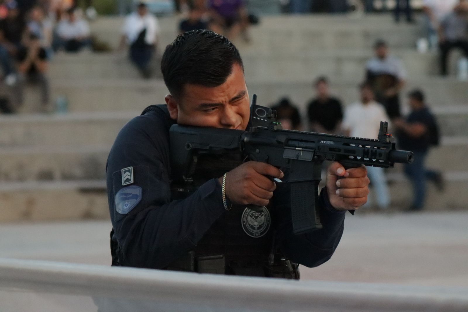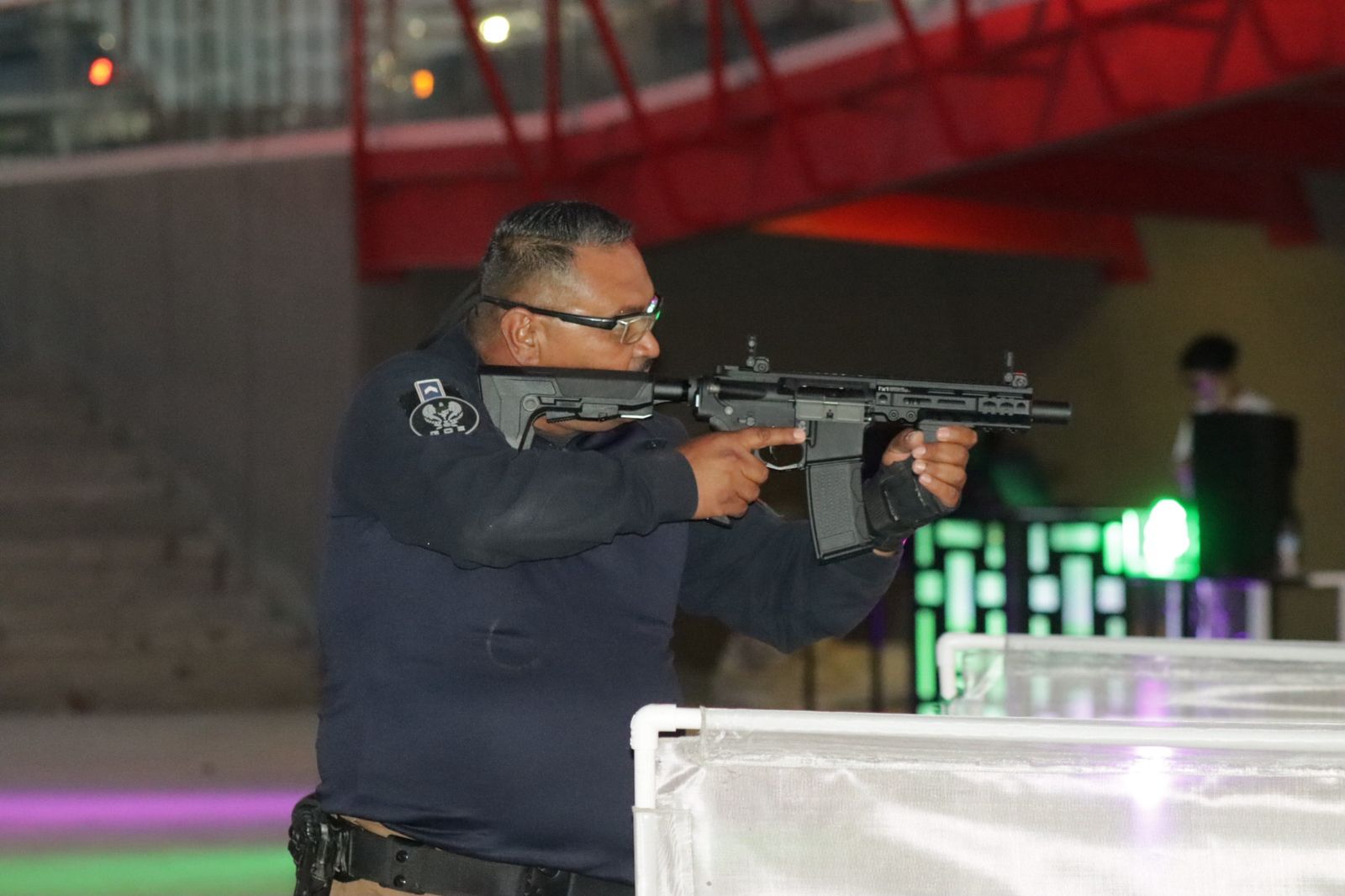 Los invitados de lujo a este torneo fueron agentes activos y cadetes de la Secretaría de Seguridad Pública Municipal, quienes dispararon con replicas electrónicas y de gas a los target de luces.