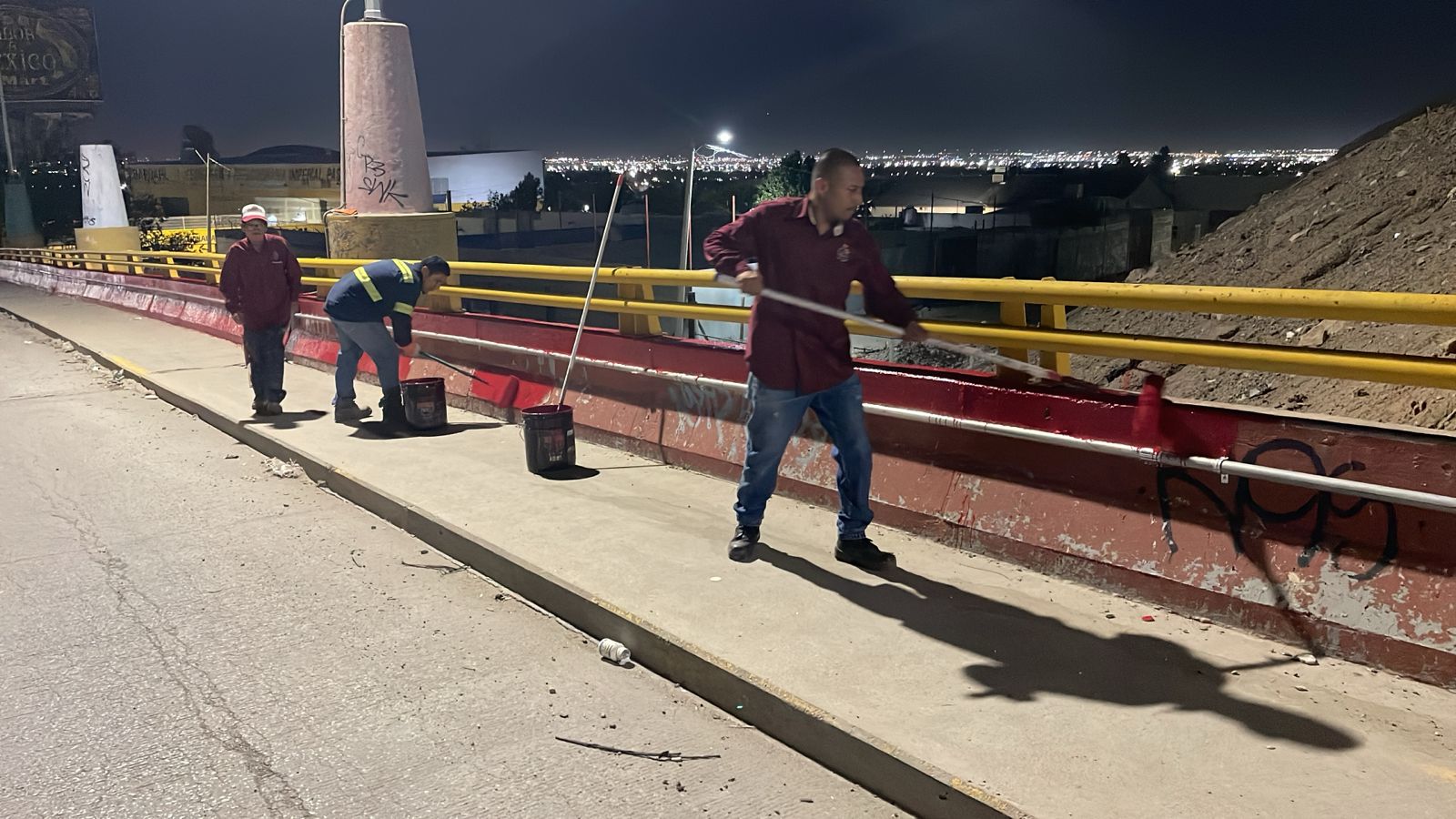 La Dirección General de Servicios Públicos Municipales, a través de la Dirección de Limpia, realiza labores de pintura en el puente ubicado en la intersección de las avenidas Manuel J. Clouthier y De Las Torres.