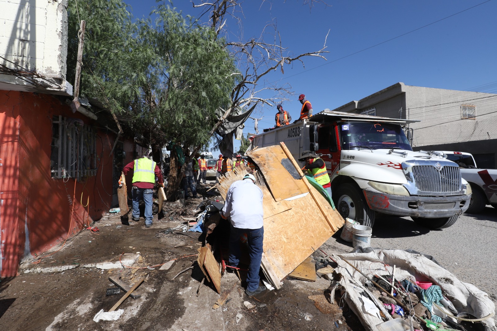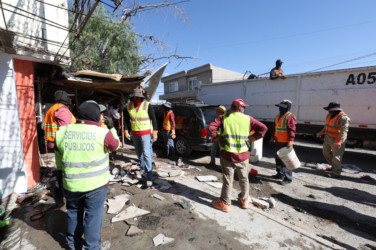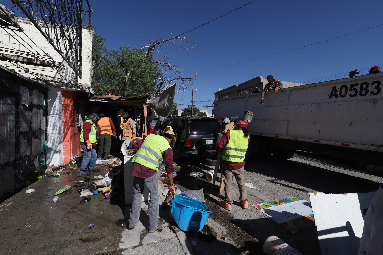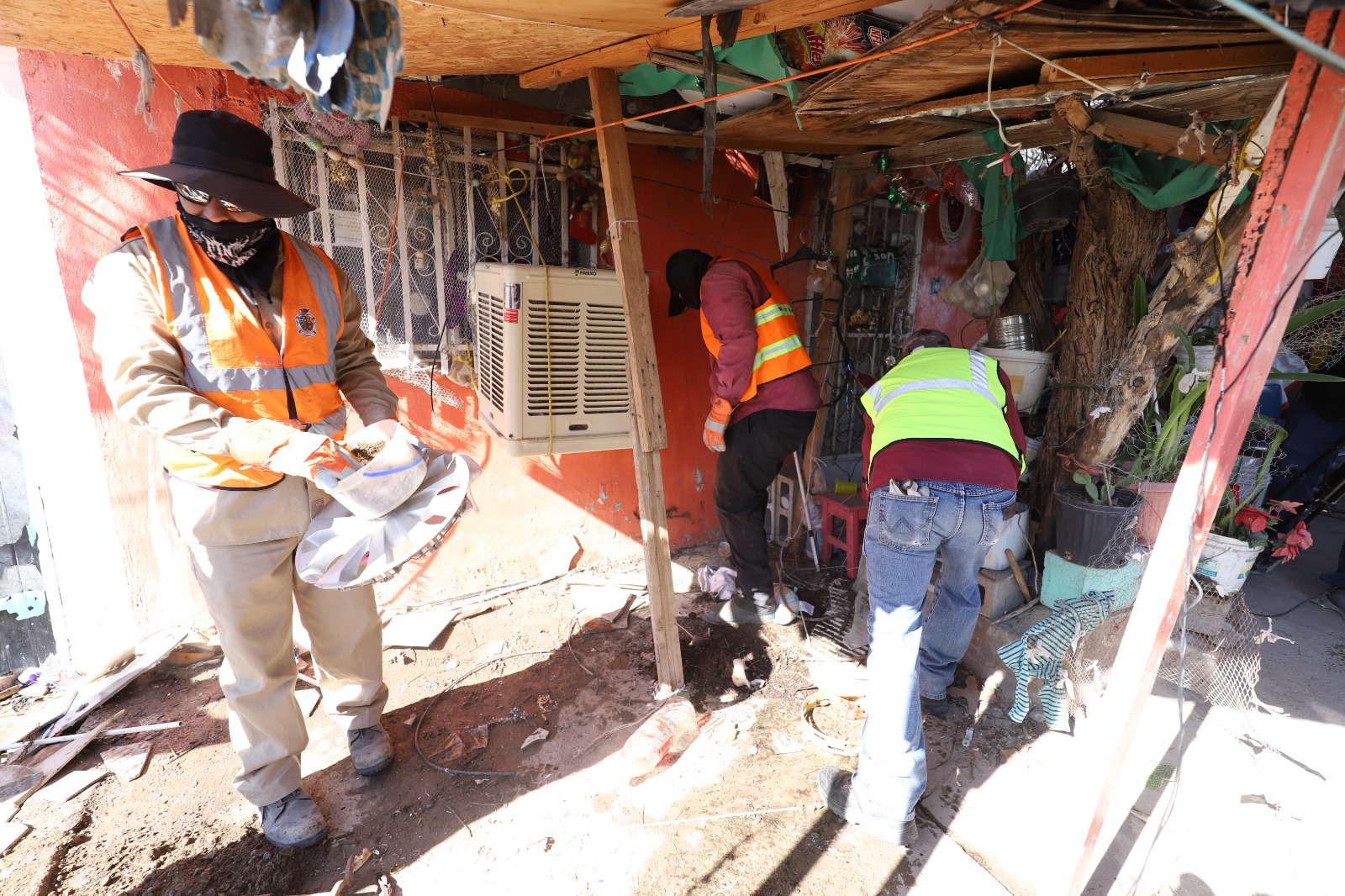 Cecilia López, de la Dirección General de Protección Civil, indicó que la dependencia se encarga de cuidar las medidas de seguridad y salvaguardar la integridad de los habitantes de la vivienda y vecinos aledaños, por lo que revisan que no haya cableado expuesto ni líneas de gas que puedan afectar al momento de que los empleados municipales retiren los muebles y otros objetos.