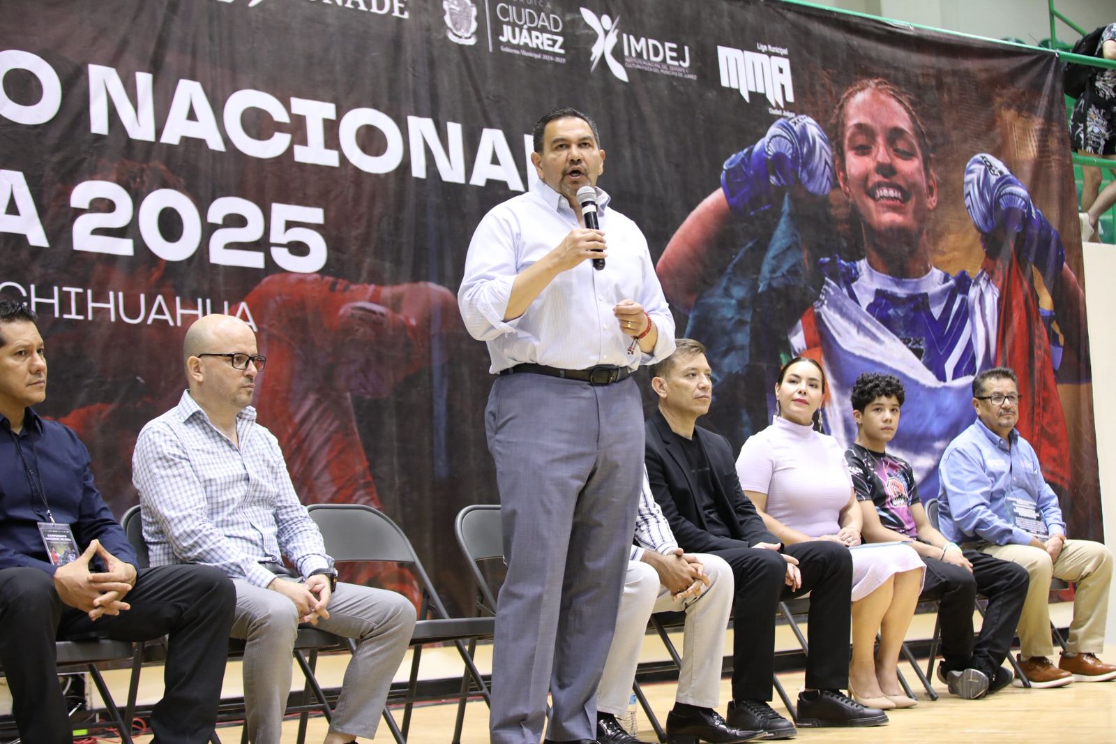 El alcalde agradeció al presidente de la Federación de Artes Marciales Mixtas, Jesús Ubaldo Marroquín Rodríguez, por confiar en Ciudad Juárez como sede de este importante evento deportivo.