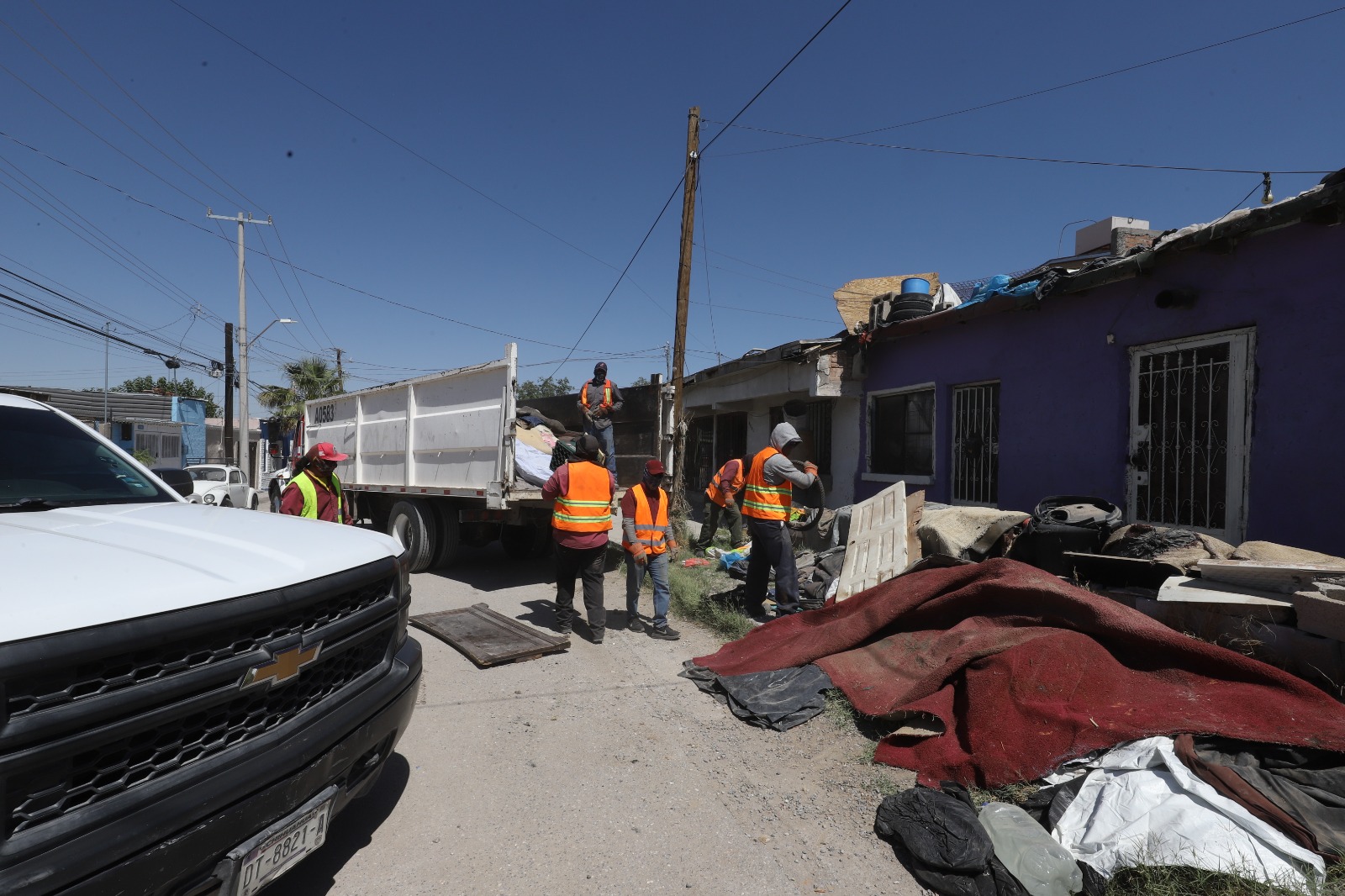 En un segundo operativo del programa permanente de Reordenamiento Urbano efectuado este día, personal del Municipio retiró muebles, llantas y basura que se encontraban en la banqueta de una vivienda entre las calles Simón Bolívar y Polonia, en la colonia Industrial.