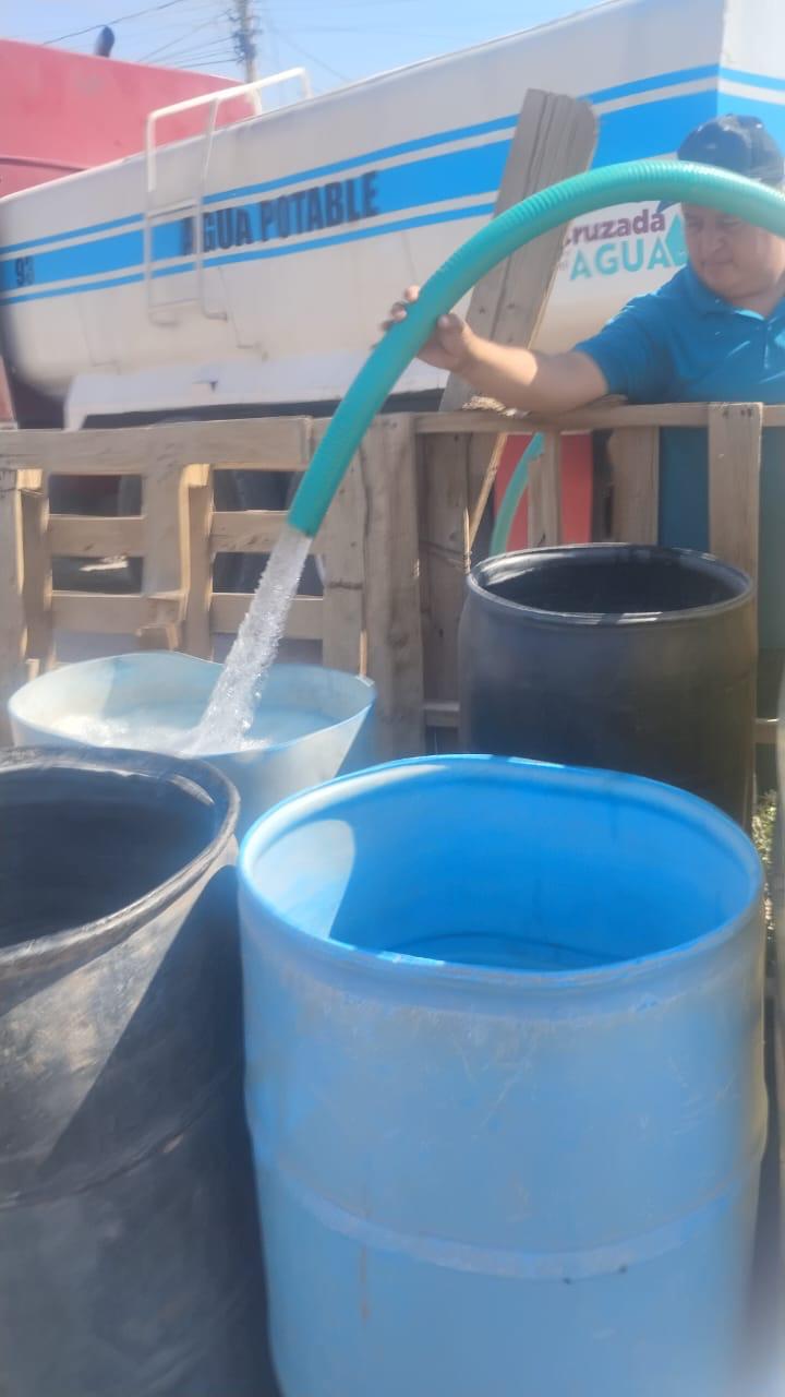 Las acciones en beneficio de la comunidad continúan diariamente con la entrega de agua potable por parte de la Dirección General de Desarrollo Social mediante el programa Cruzada por el agua.