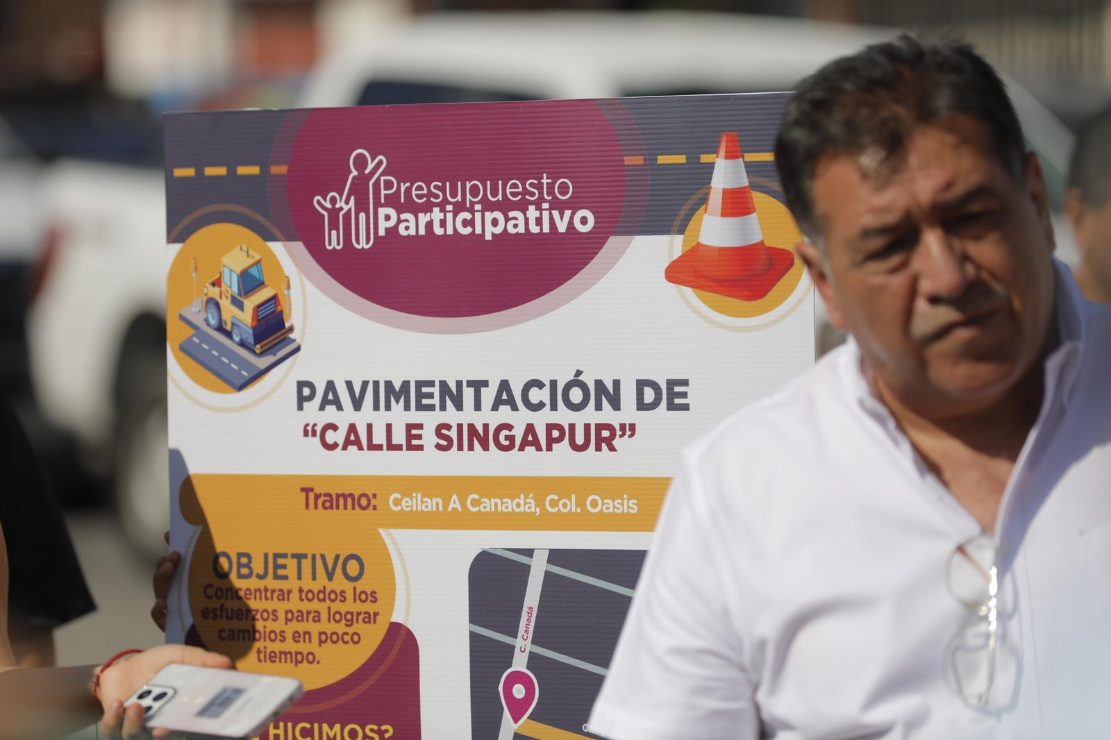 Con Presupuesto Participativo entrega presidente rehabilitación de calle Singapur