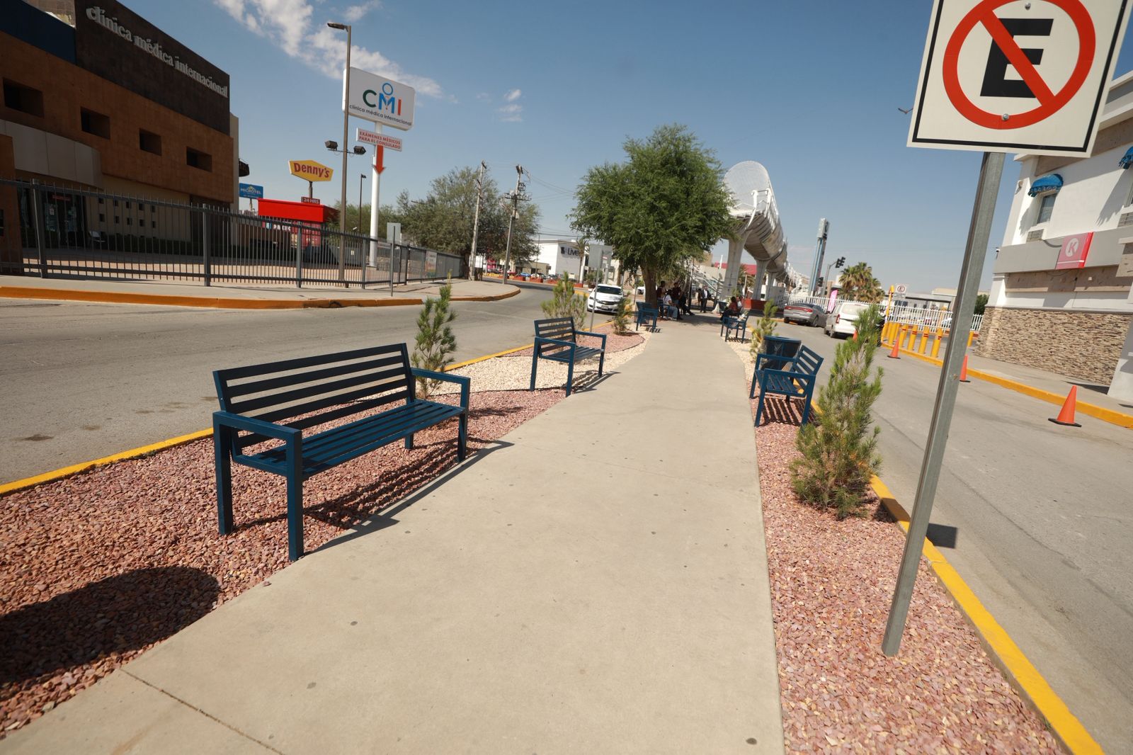 La directora general de Desarrollo Urbano, Claudia Morales Medina, informó que fueron intervenidos 75 metros lineales de camellón, con la atención de guarniciones, reforestación, piedra decorativa y la colocación de once bancas.