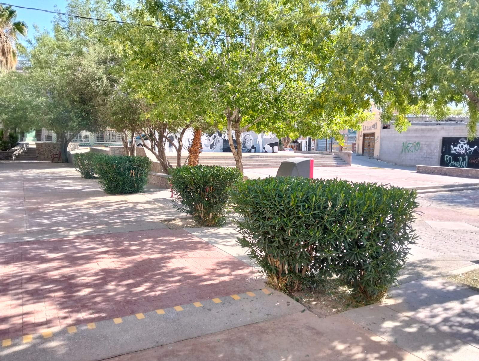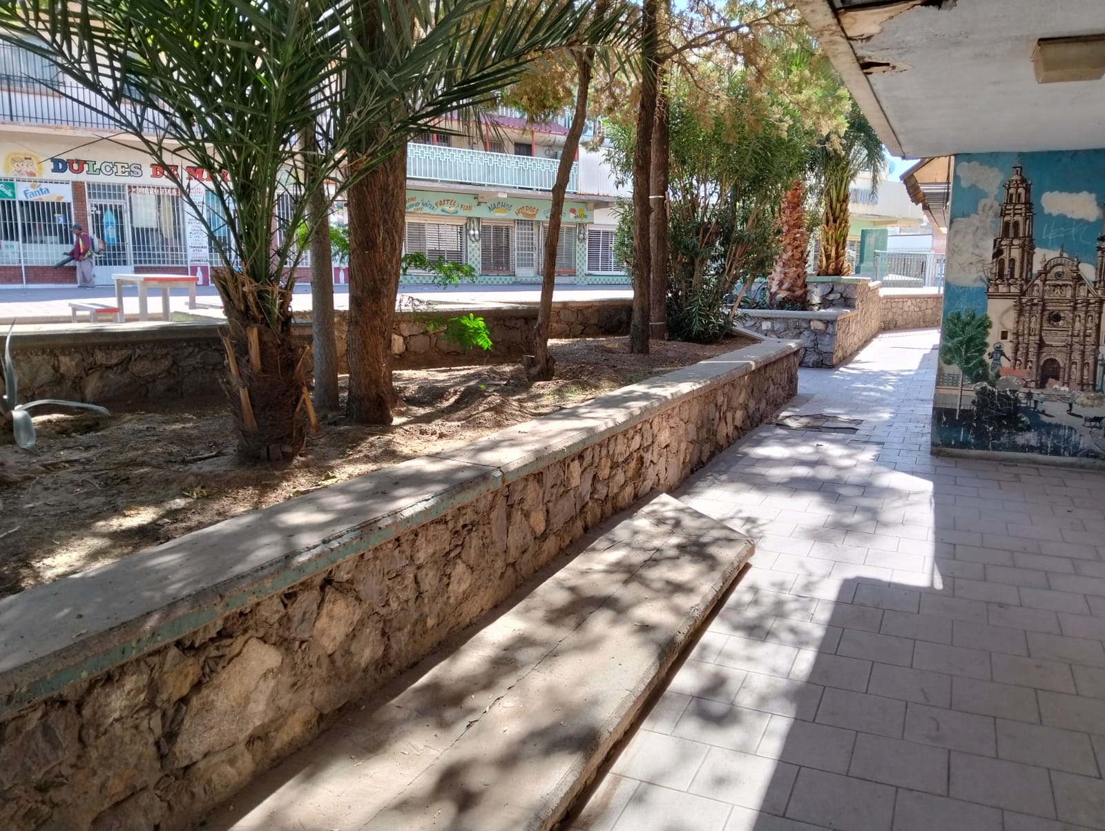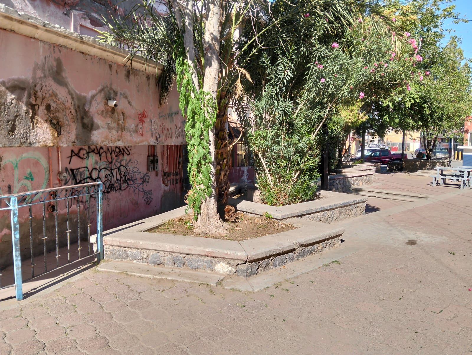 Como parte de las acciones que lleva a cabo la Dirección General de Servicios Públicos Municipales en las distintas áreas verdes de la ciudad, personal de la Dirección de Parques y Jardines atendió la plaza Tin Tan, localizada en la Zona Centro, a un costado del Mercado Juárez.