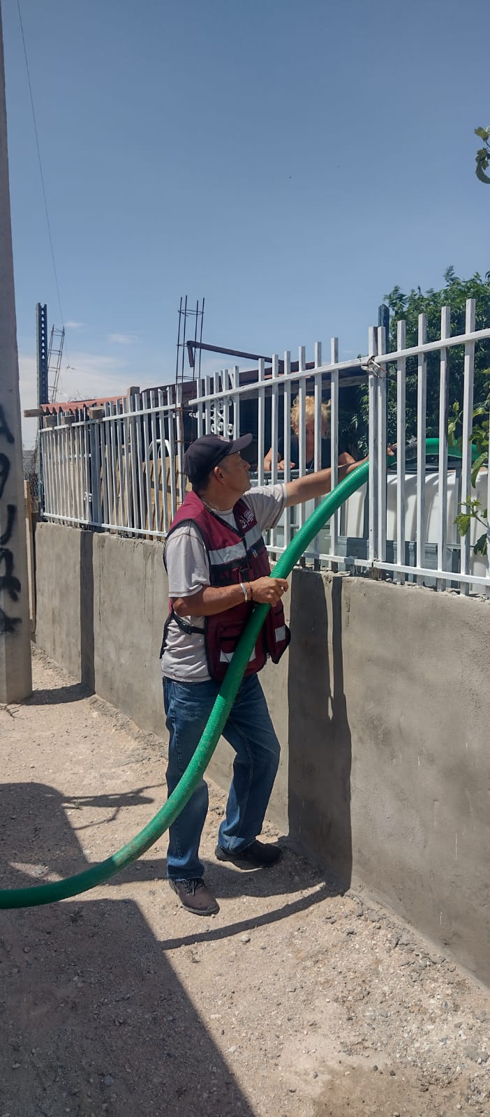 "Hemos estado recorriendo, por instrucción del Presidente Cruz Pérez Cuéllar, las colonias en donde aún no están conectadas a la red de distribución de agua, además de aquellas zonas en donde llega a existir alguna falla en el suministro”, explicó.