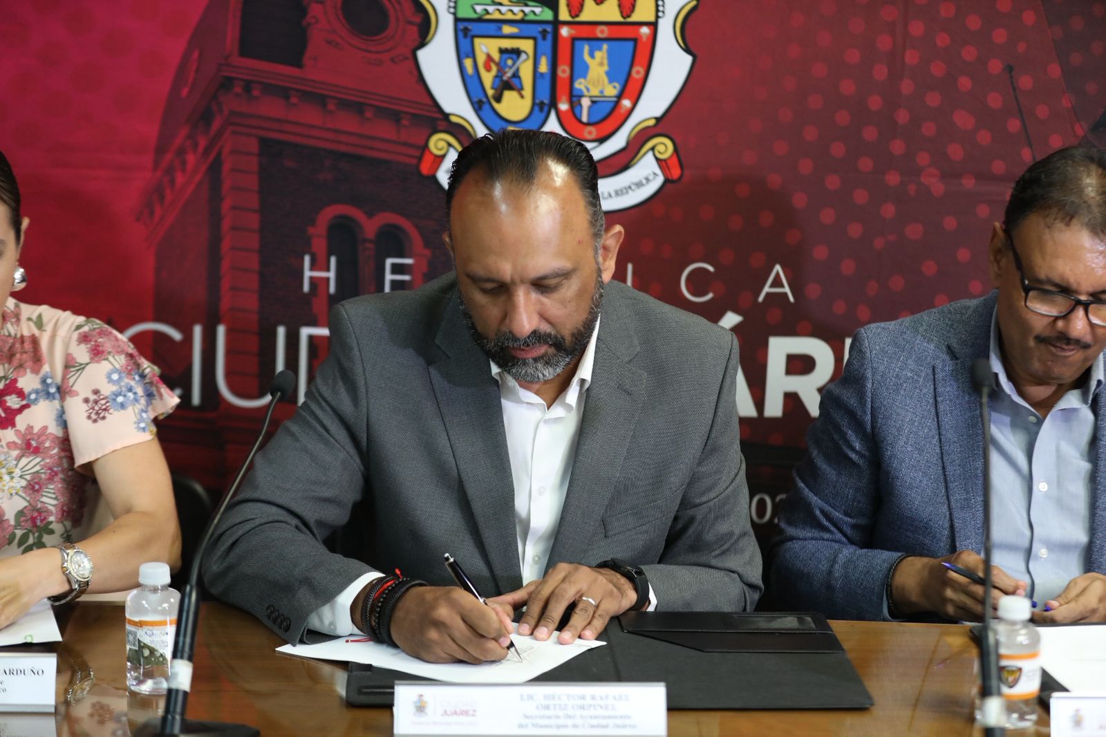 En representación del Presidente Municipal, Cruz Pérez Cuéllar, signó el acuerdo el secretario del Ayuntamiento, Héctor Rafael Ortiz Orpinel.