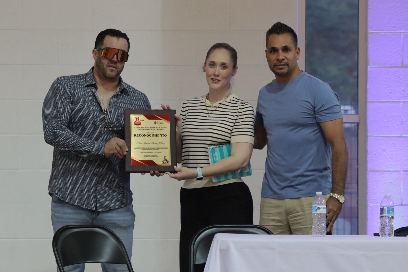 Durante la ceremonia, Escalante Suárez entregó un reconocimiento por su trayectoria deportiva a Nora Iliana Chávez. Sus hijos Esmeralda y Christopher Camarena fueron los encargados de recibir la placa.