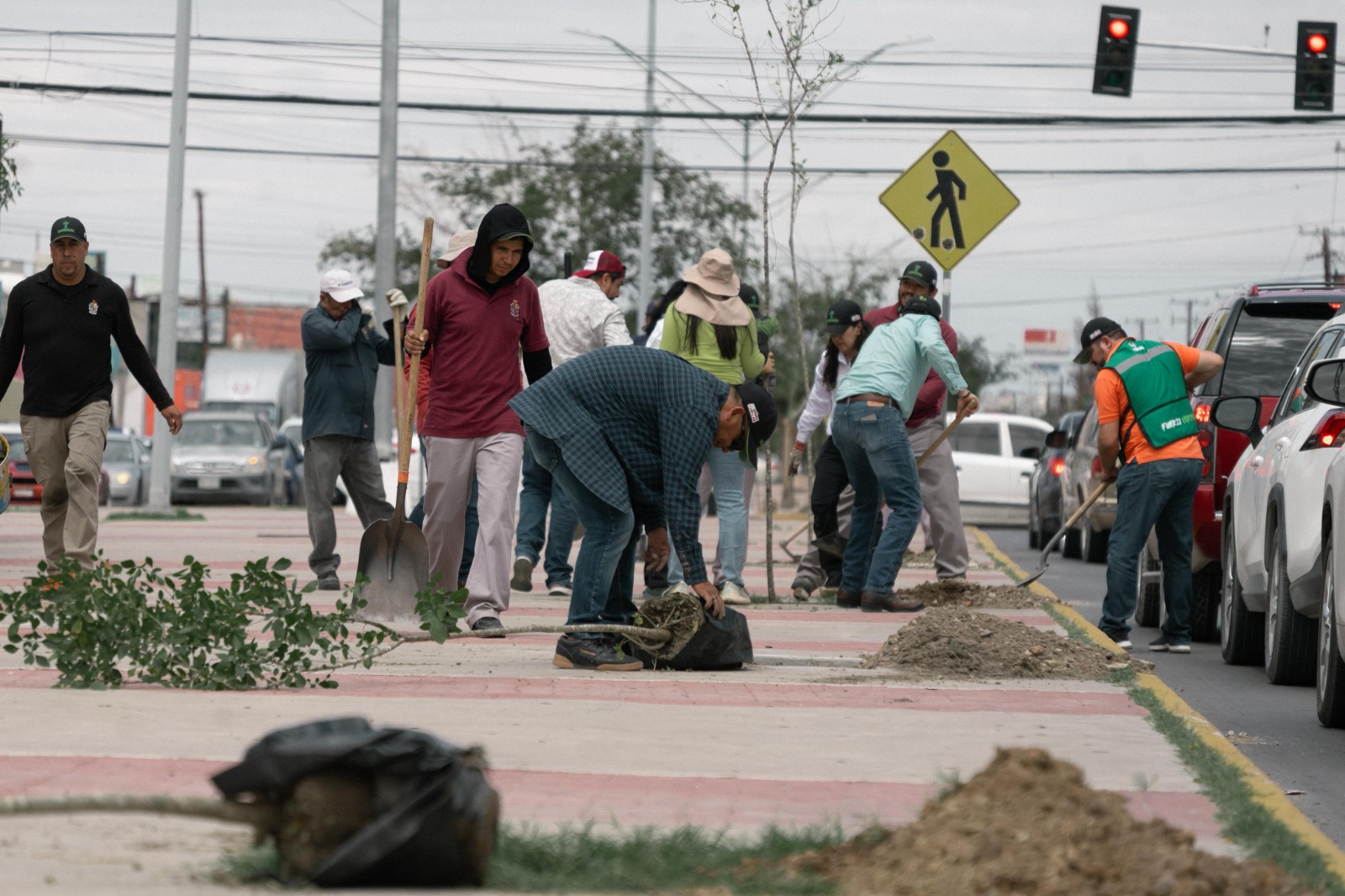 Este día, personal de la Dirección de Parques y Jardines continúo con la forestación en el camellón central de la avenida Ejército Nacional, en coordinación con el diputado Alejandro Pérez Cuéllar.