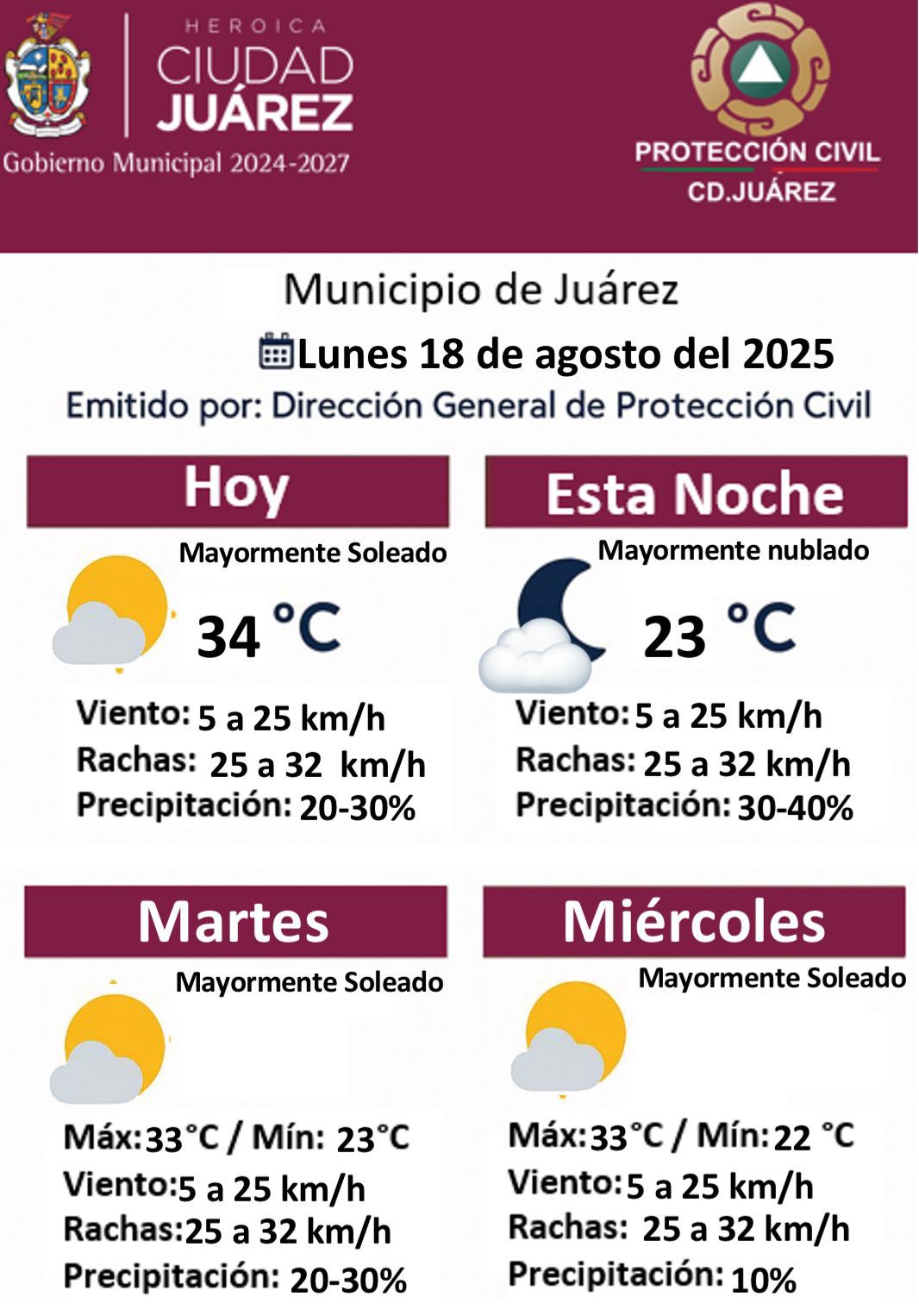 La Dirección General de Protección Civil informó el pronóstico del clima para los próximos días en el municipio.