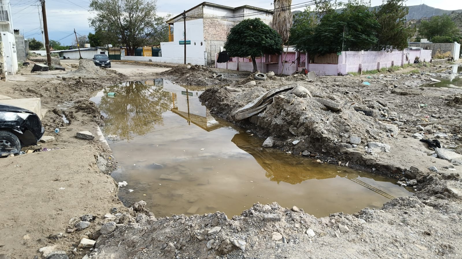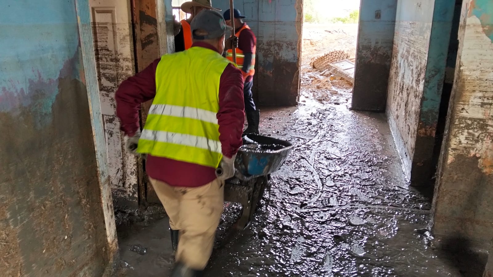 El funcionario indicó que en coordinación con la Dirección General de Obras Públicas y la Dirección General de Protección Civil, trabajan en la vialidad con maquinaria pesada para retirar el lodo, además de que se trabaja en el desagüe y en el interior de las viviendas.